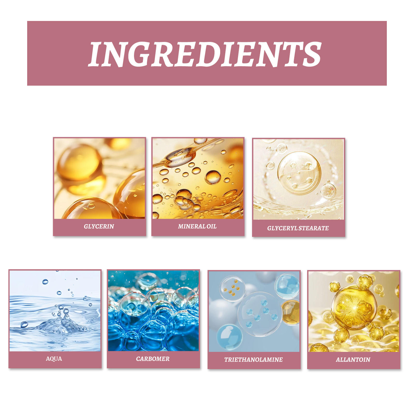 Our butt volumizing cream contains glycerin, mineral oil. It can make the buttocks grow quickly, and the mask strengthening product makes the buttocks fuller, bigger and firmer. Its application method is simple: 1. Wash and dry the buttock skin. 2. Apply proper amount of cream to face or buttocks. 3. Gently massage and lift the buttock muscles with your hands. Better results can be obtained with daily use. And can have sexy hips that can be worn boldly without worrying about other people's eyes.