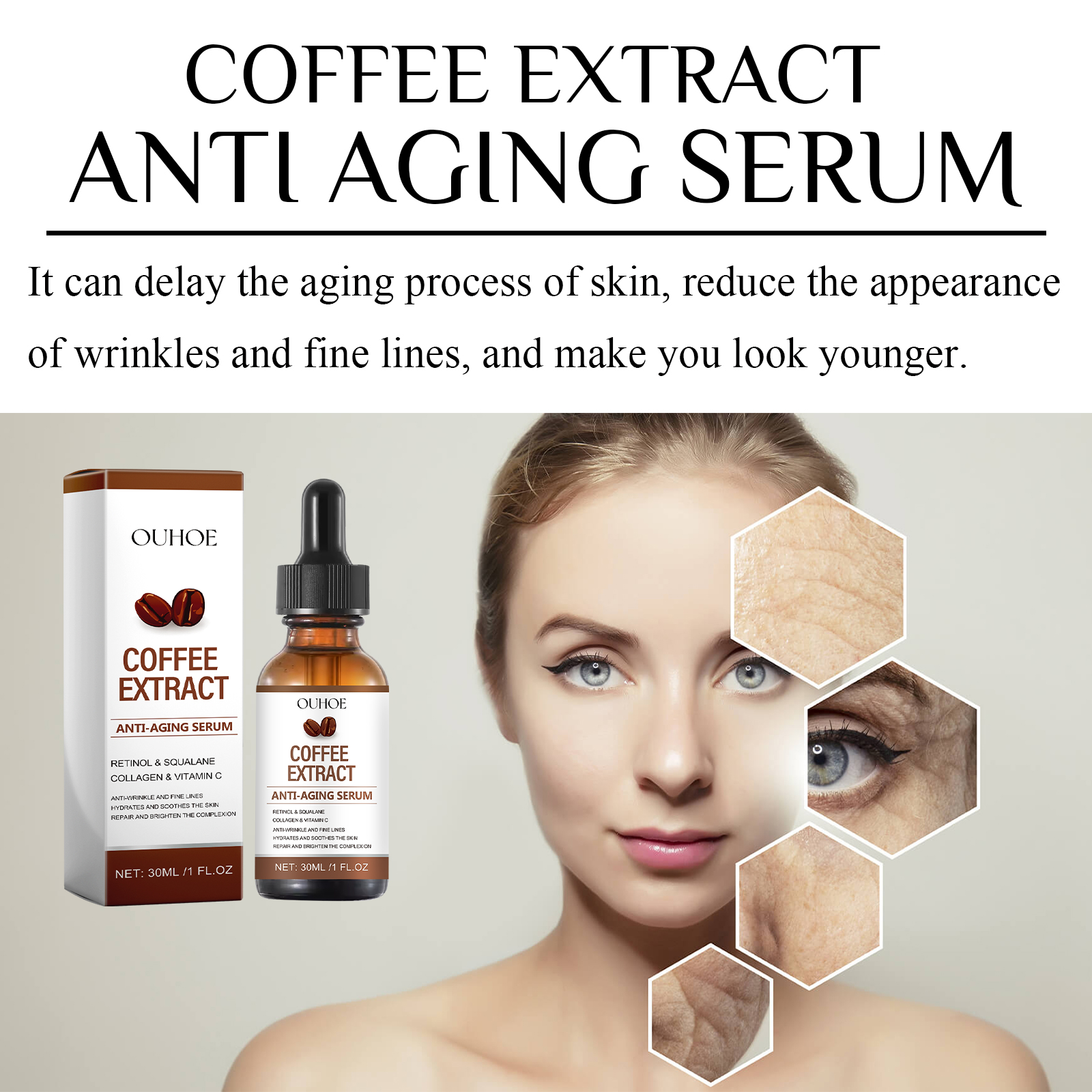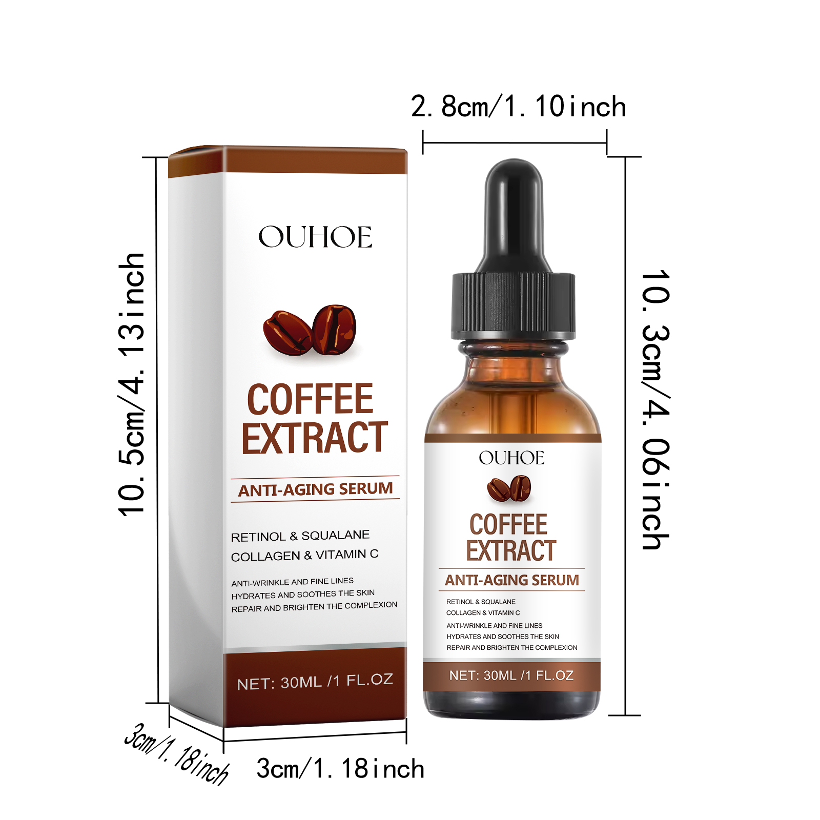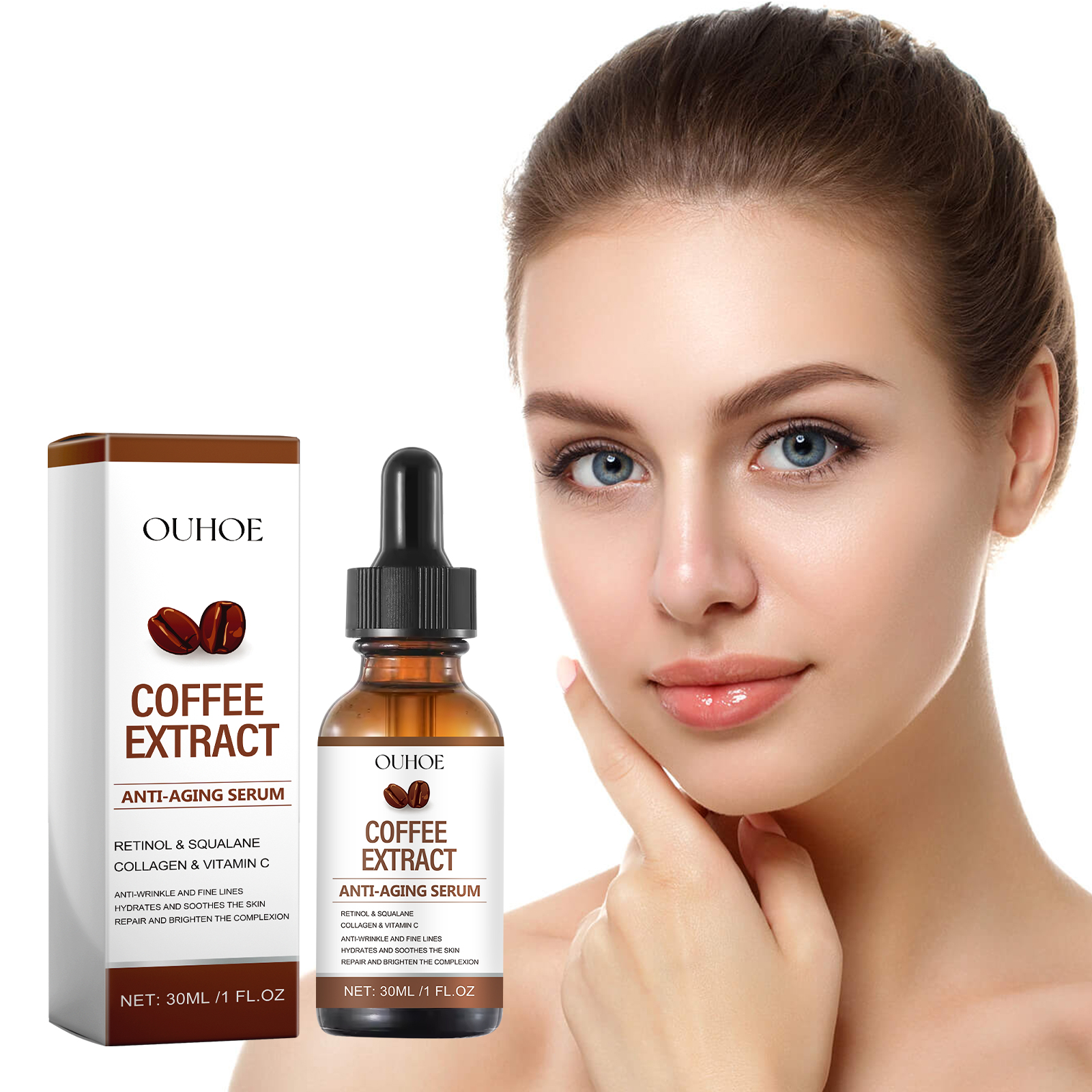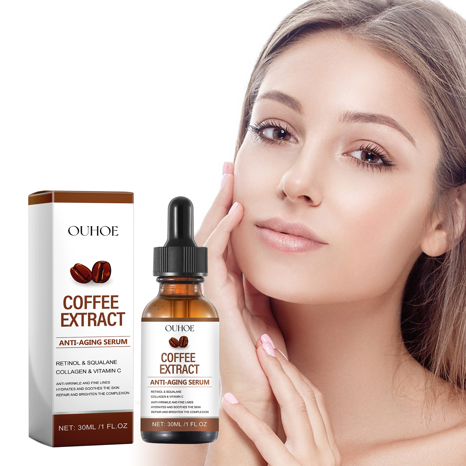 Our caffeinated face anti-wrinkle serum contains collagen, retinol. It can slow the aging process of the skin, reduce the appearance of wrinkles and fine lines, and make you look younger. Its use method is very simple: after cleansing and toning, evenly apply appropriate amount to the skin around the eyes, massage gently with fingertips in circular motions until completely absorbed. And it can make the skin firmer.