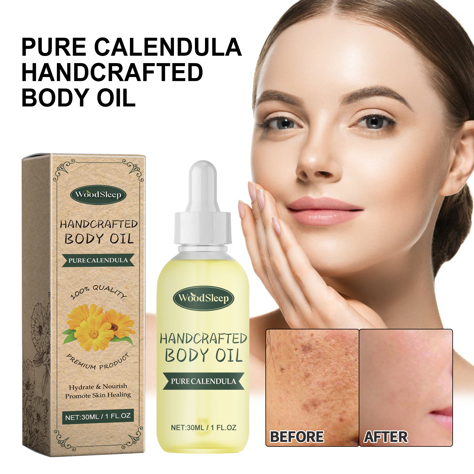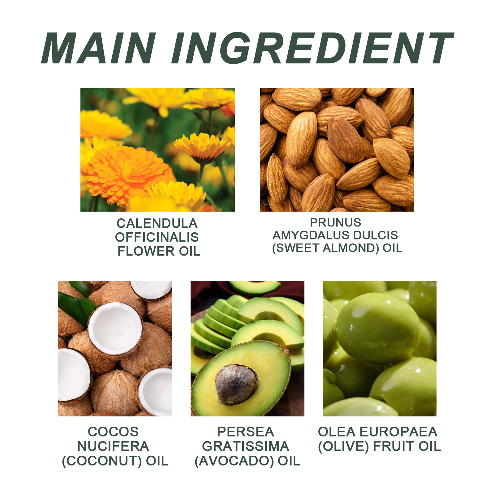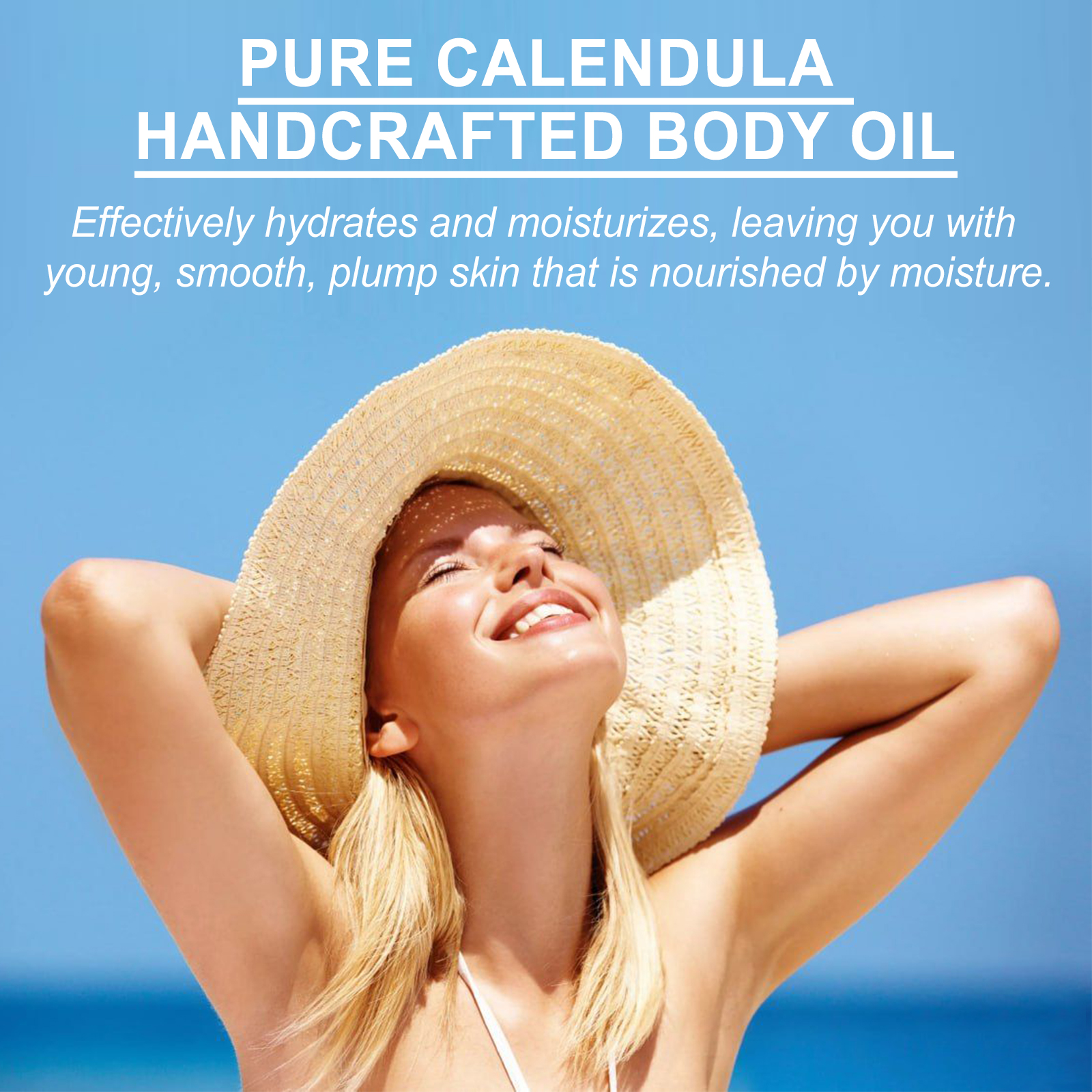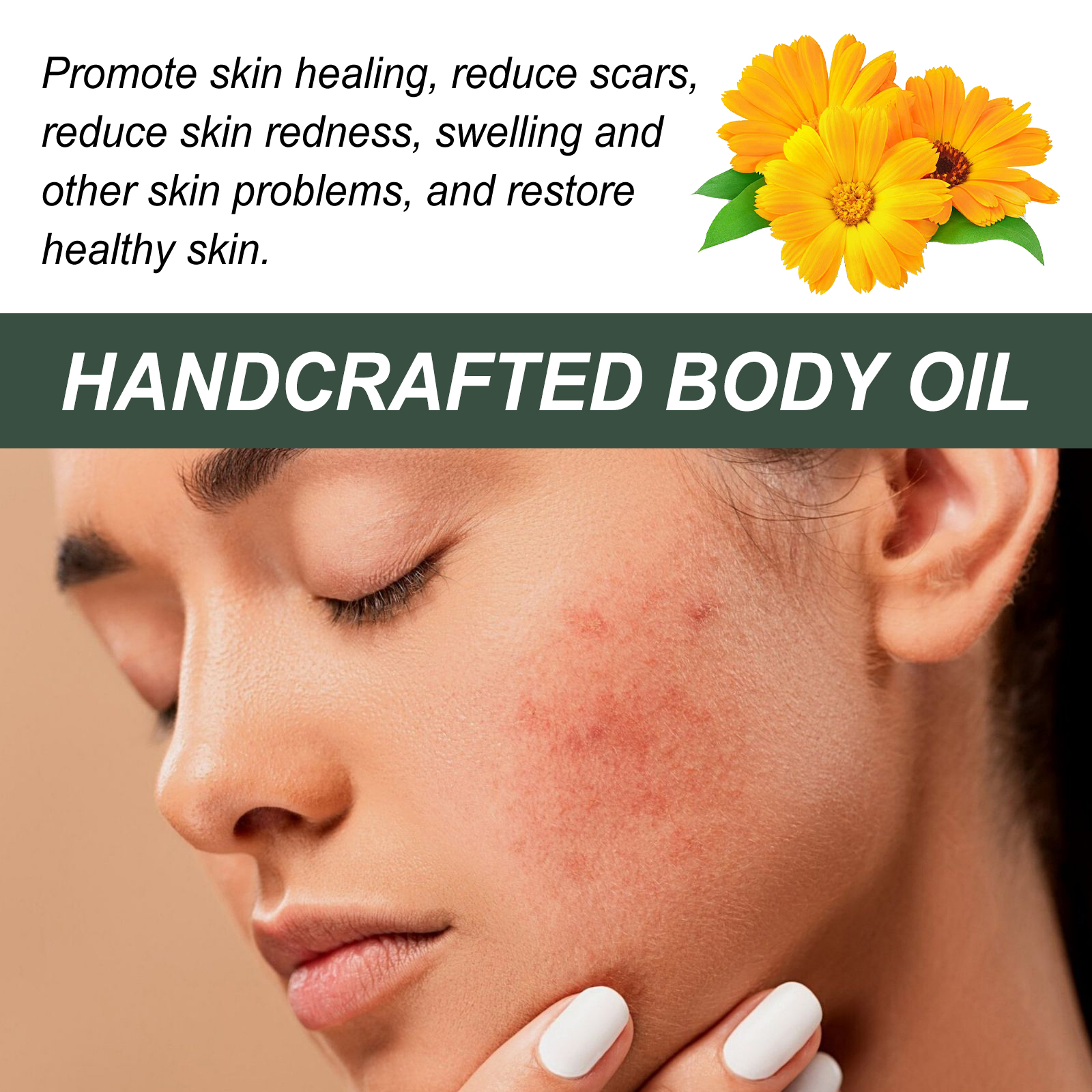 Our Pure Calendula Handcrafted Body Oil contains Calendula Officinalis Flower Oil, Prunus Amygdalus Dulcis(Sweet Almond)Oil, Cocos Nucifera(Coconut)Oil. It can promote skin healing, reduce scars, reduce skin problems such as skin redness, swelling, and restore healthy skin, helping to soothe the skin, even out the complexion, tighten the skin, and make your skin look smoother and firmer. Its use method is very simple: after cleansing the body skin, take appropriate amount of this product evenly apply to the body skin, and gently massage until absorbed. It can effectively moisturize and moisturize the skin, leaving you with young, smooth and full skin.