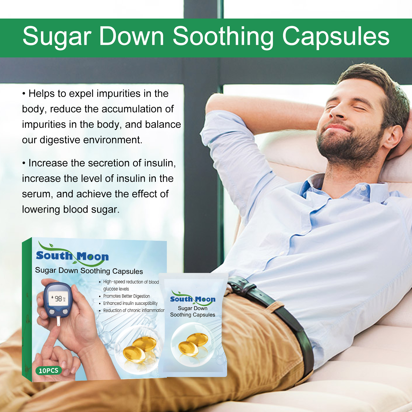 Our Tangshu capsules contain gallnut oil, sunflower oil and dogwood oil. It speeds up the breakdown of glycogen in the body and increases insulin sensitivity, allowing the body to use glucose to control blood sugar levels. Its use method is very simple: 1. Clean hands and private parts; 2. Take a capsule and gently put it into your private part; 3. It is recommended to lie down and allow the capsule to dissolve naturally and be fully absorbed. It helps to expel impurities from the body, reduce the accumulation of impurities in the body, and balance our digestive environment.