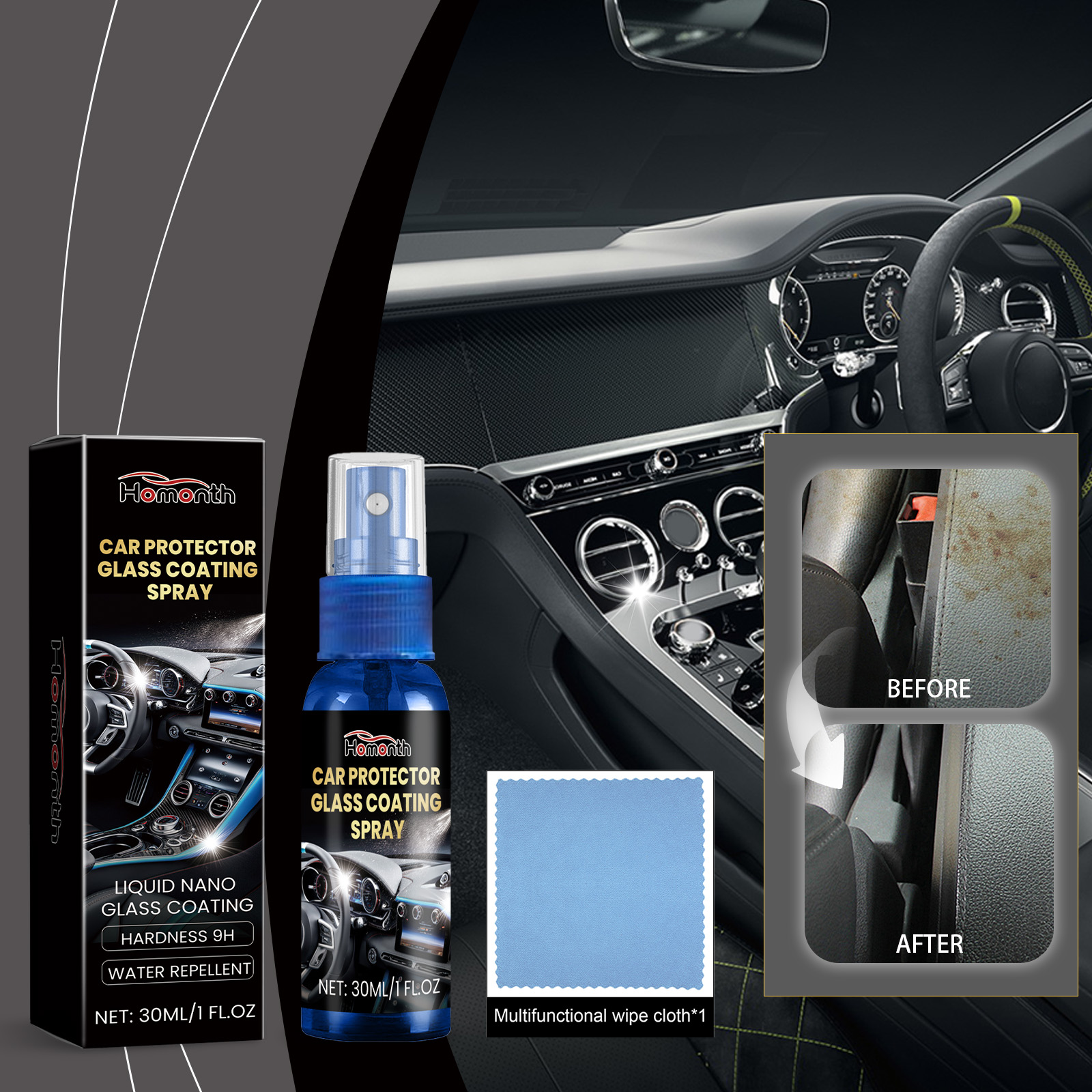 Our automotive interior repair solution contains lauryl polyether-7 and sodium lauryl polyether sulfate. It keeps the interior clean and improves the overall sense of value inside the car. Its use is very simple: shake the product, spray it on the glasses cloth, and wipe it off with a towel. And it can remove the dirt and stains inside the car and restore it to its original state.
