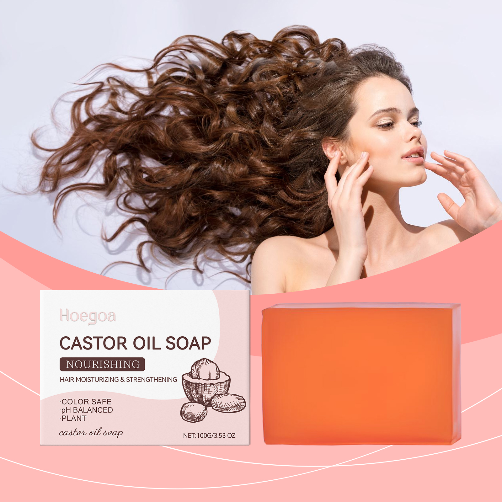 Our castor oil shampoo soap contains sodium palmitate and glycerin. It promotes hair growth and strengthens roots. Provides deep moisturizing and repairing effect to protect hair. Stimulate blood circulation, refresh the mind, and leave a fresh aroma. The way to use it is simple: 1. Wet your hair completely with warm water. 2. Apply the soap directly to your hair or rub it into your hands to lather. 3. Gently massage your scalp with your fingers to make sure the foam is evenly distributed. 4. Rinse thoroughly with clean water to ensure there is no residue. Castor oil activates hair roots and promotes growth. Remove scalp oil and dirt.