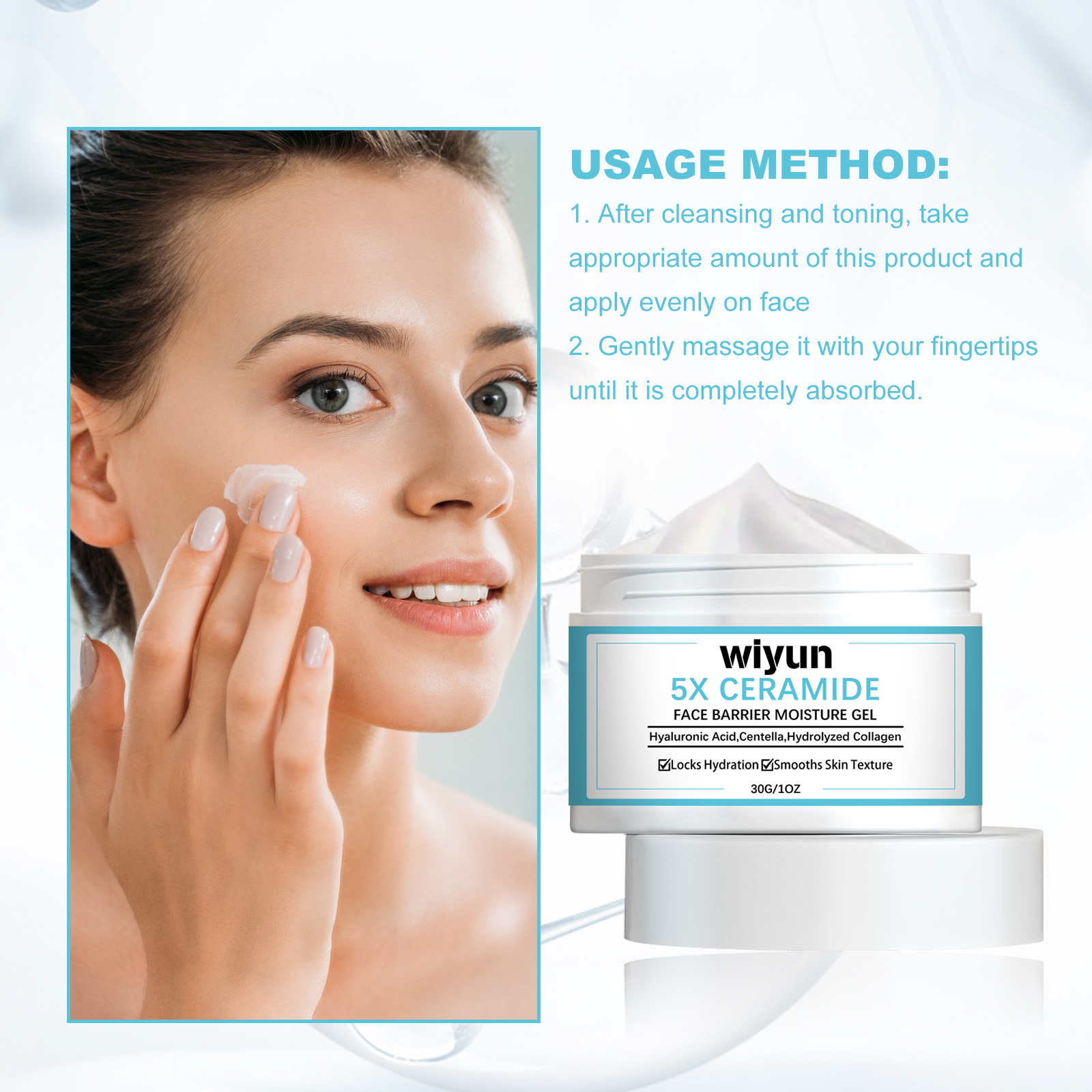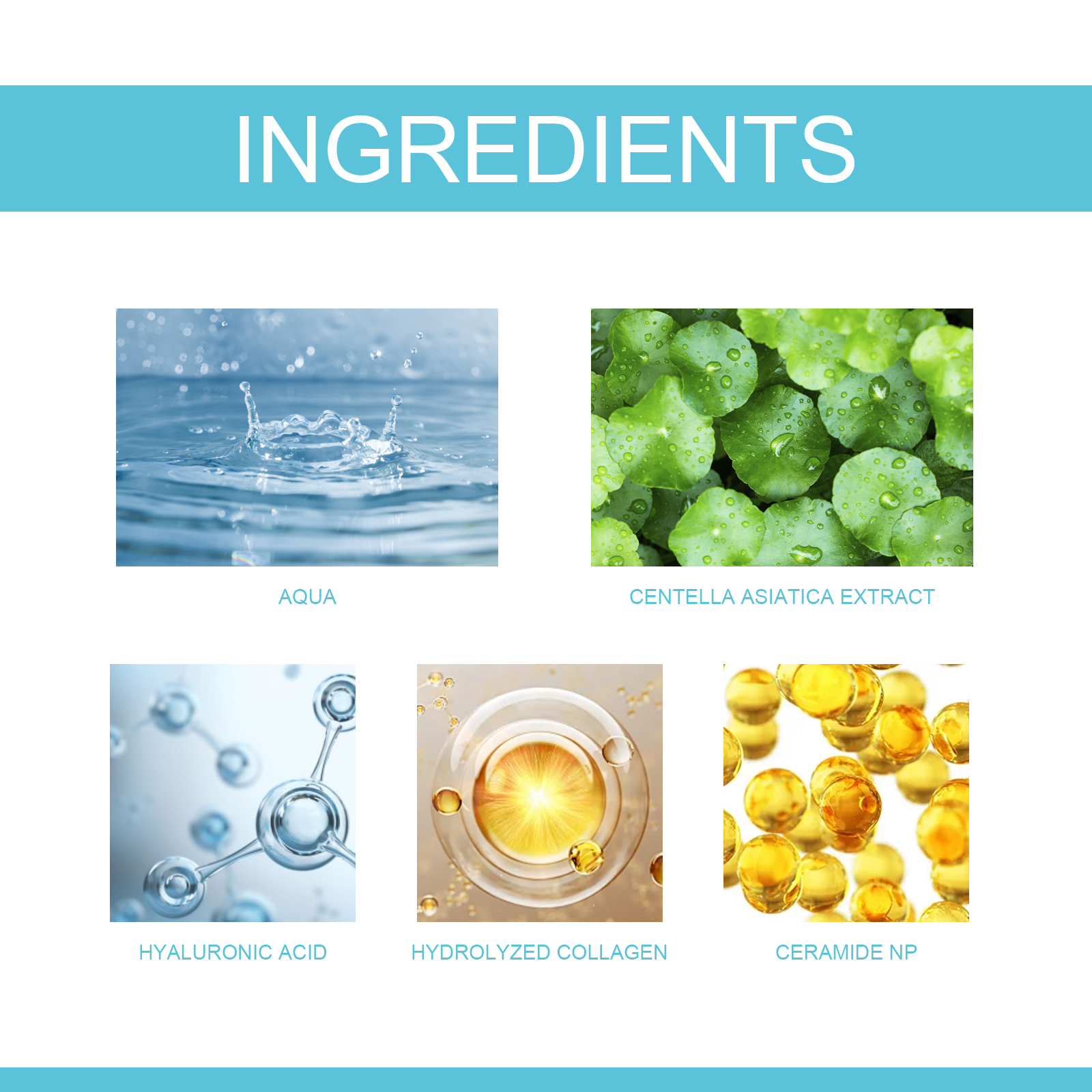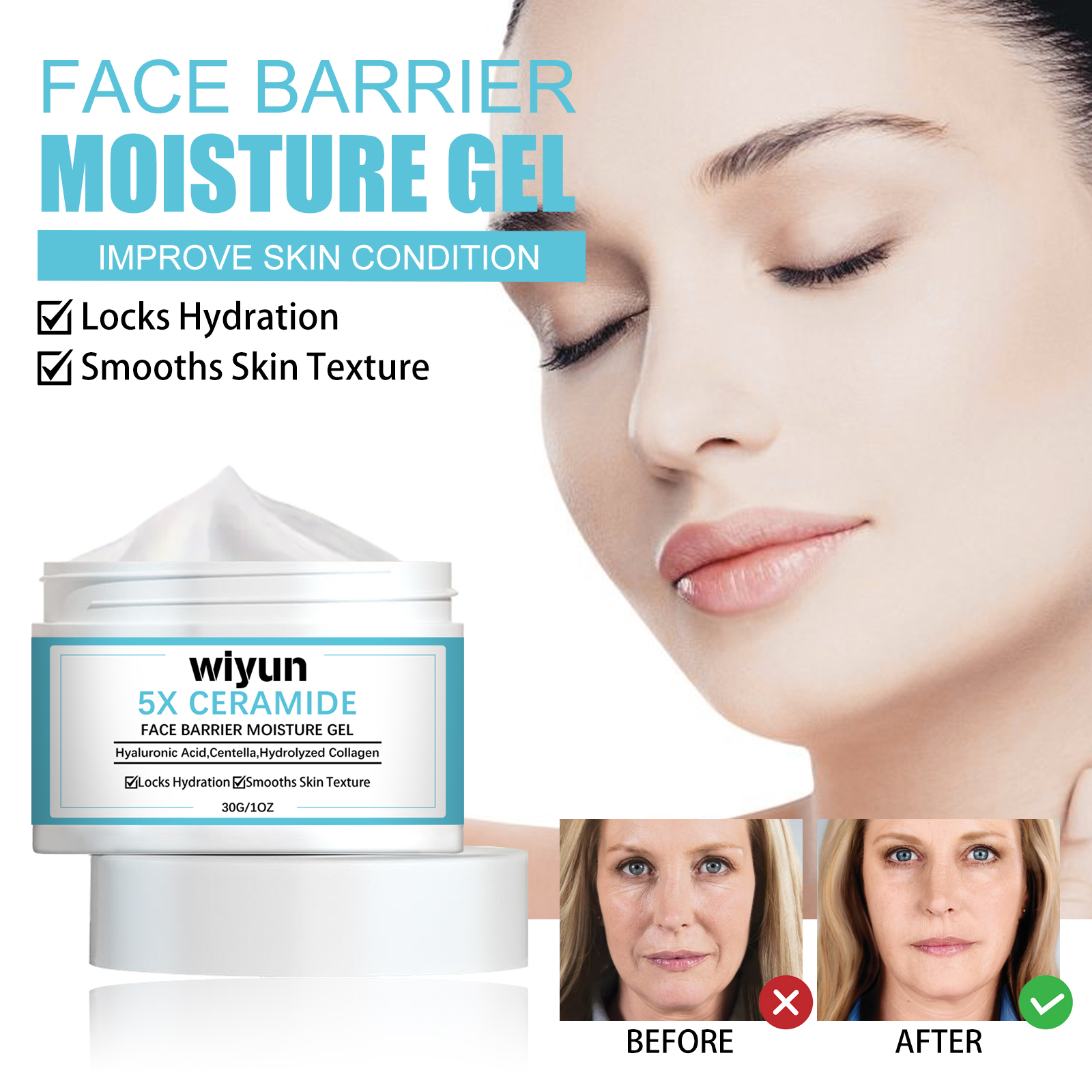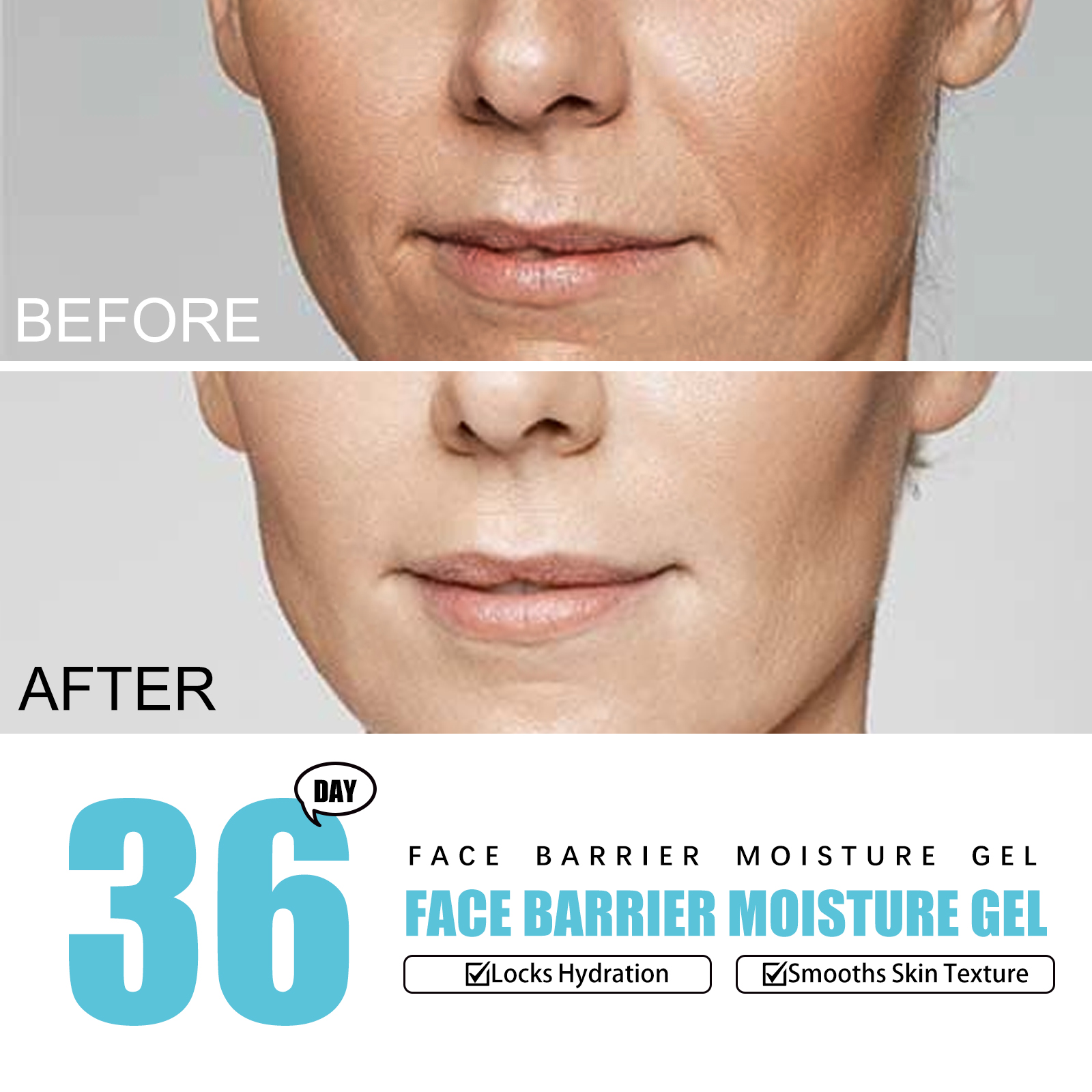 Our Face Barrier Moisture Gel contains Centella Asiatica Extract, Hyaluronic Acid, Hydrolyzed Collagen. It can effectively improve wrinkles and fine lines, help smooth the skin, prevent dull return. Its use method is very simple: after cleansing and toning, take appropriate amount of this product evenly apply to facial skin, massage gently with fingertips until completely absorbed. It is quickly absorbed into the skin, leaving your skin feeling fresh all day long.