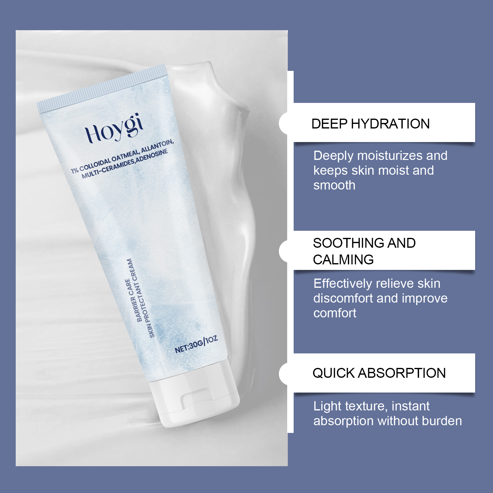 Our ceramide barrier cream contains adenosine, hyaluronic acid, ceramide EOS. It can improve the texture of the skin and make the skin softer and more delicate. Improve skin absorption and enhance skin care effect. The way to use it is simple: 1. Clean your face and keep it dry; 2. Apply appropriate amount of the product evenly on facial skin, gently massage around the skin to promote absorption. Strengthen skin barrier, improve skin self-repair ability. Improve skin absorption and enhance skin care effect.