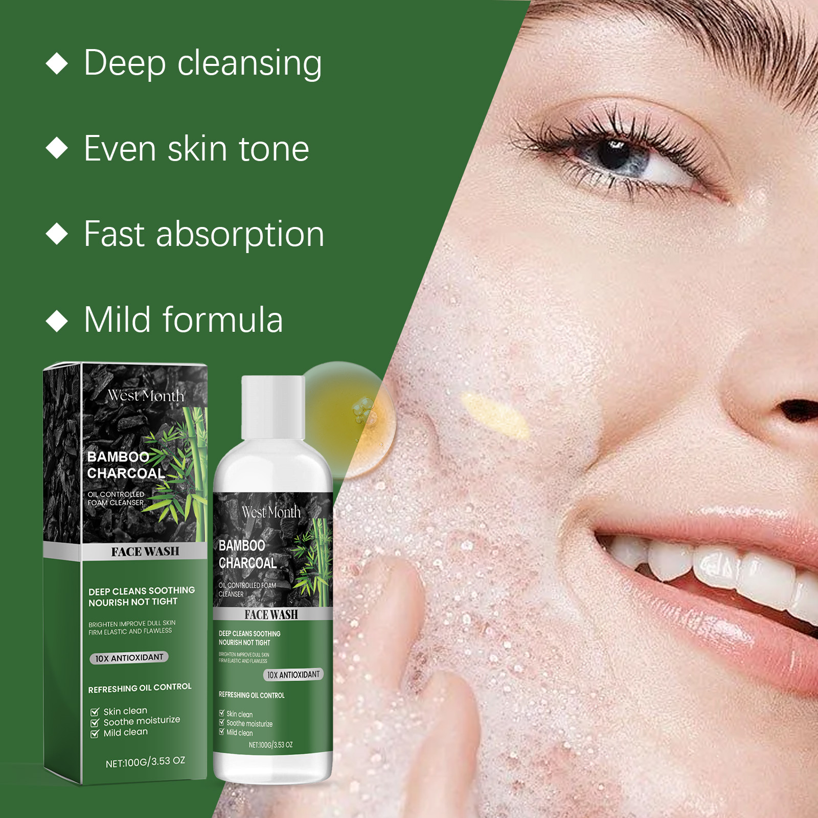 Our charcoal face wash contains cocamidopropyl betaine and tocopherol. It can help remove accumulated impurities such as dirt, oil and makeup from the skin and keep your facial skin clean. Its use method is very simple: moisturize facial skin, apply appropriate amount of this product evenly on facial skin, gently clean facial skin with circular way, rinse with water. And can adjust the skin water and oil balance, keep skin fresh.
