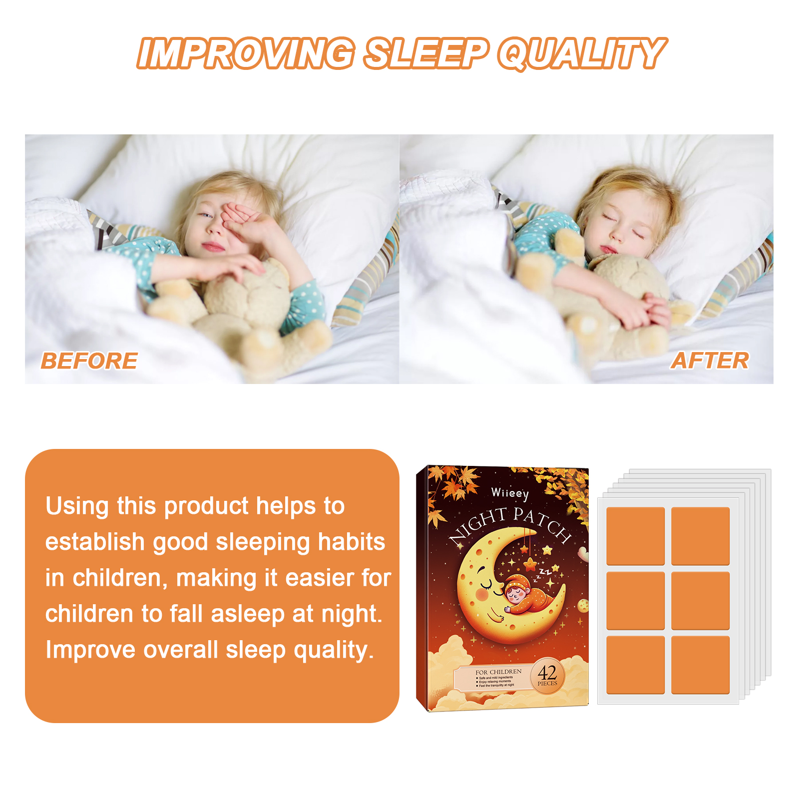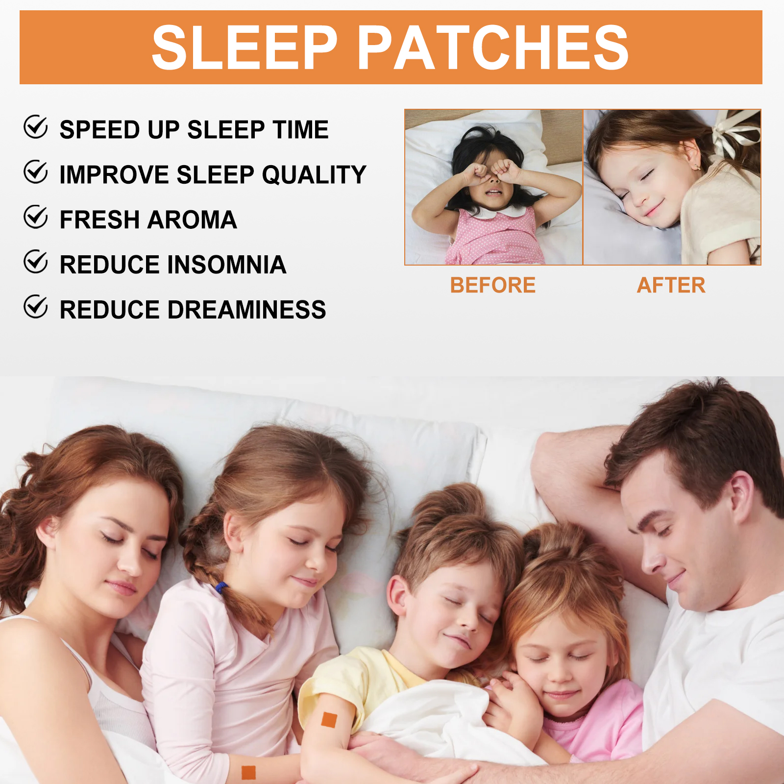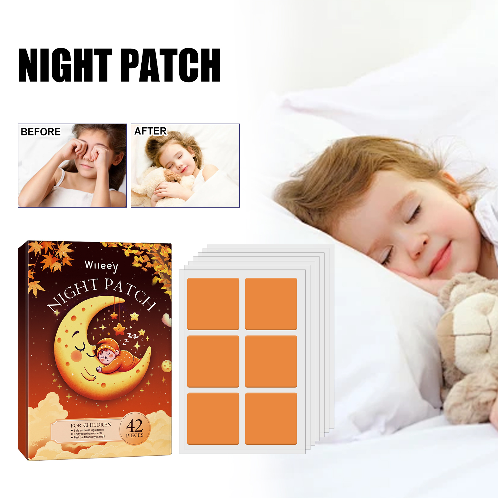 Clean and dry the skin before going to bed, open the package, remove the patch, peel off the back film, then apply the patch to the skin, gently press, after waking up, remove the patch. After use, it can alleviate the fatigue and anxiety of work and study during the day, reduce the time to fall asleep, enhance deep sleep, reduce insomnia, dreaminess, etc., improve sleep quality and help fall asleep.