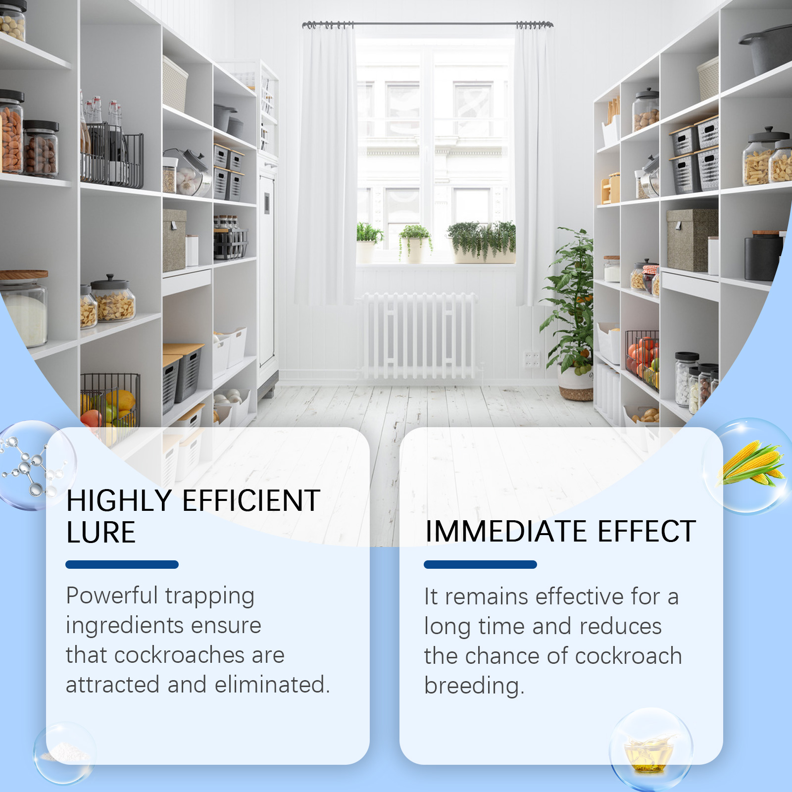 Our cockroach bait stations contain cornstarch, vegetable oil, and glucose. It can effectively trap and completely destroy cockroaches, unique formula, enhance the trapping effect, cockroaches have nowhere to escape. The ingredients are safe, non-toxic and harmless, friendly to people and pets. Its use is simple: it lasts up to 90 days. Suitable for a variety of places, you can glue the adhesive behind the bait and then place the bait in an area where cockroaches are often seen. Powerful trapping ingredients ensure cockroaches are attracted and destroyed; It remains effective over a long period of time and reduces the chance of cockroaches breeding.