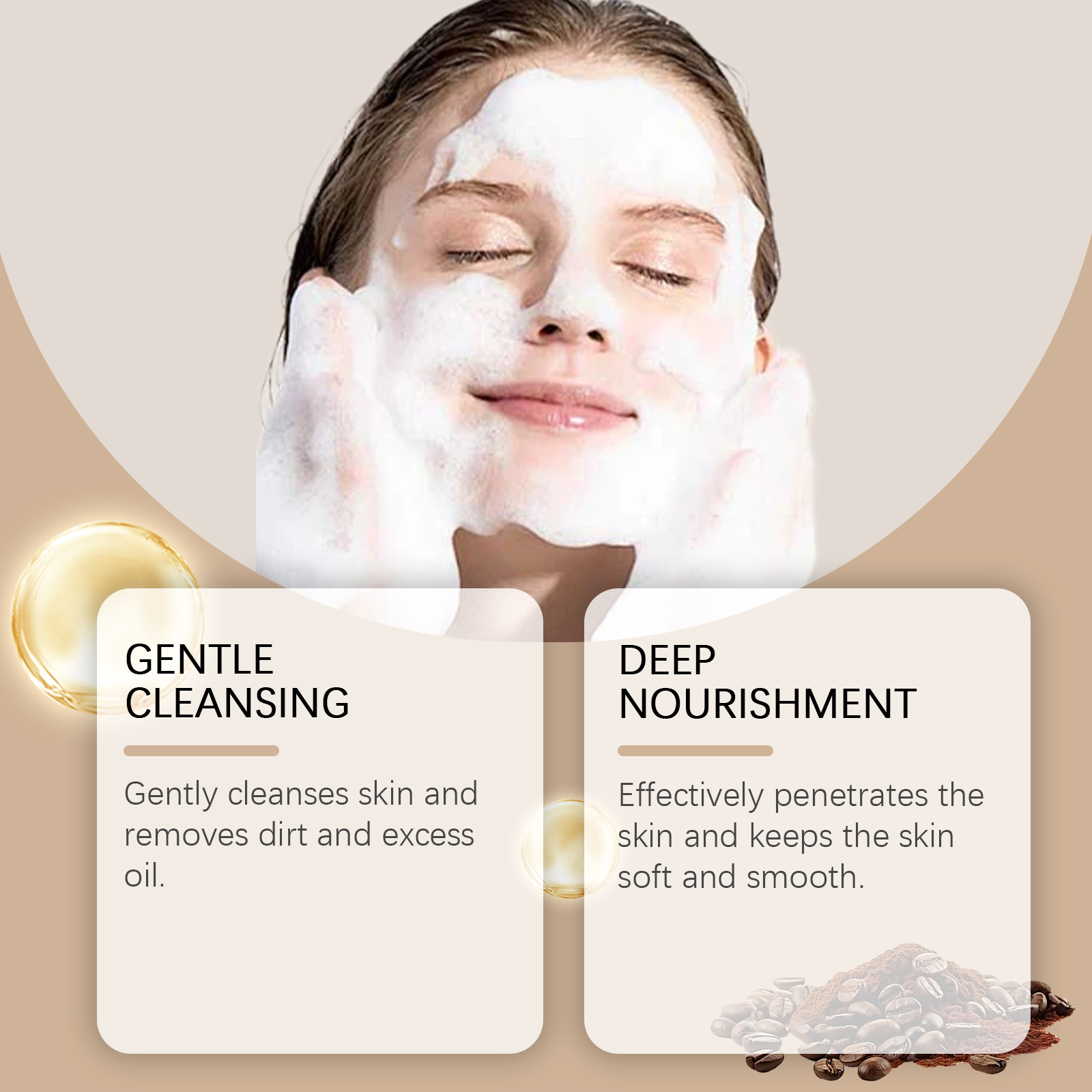 Our coffee cleansing soap contains turmeric root extract, tocopherol (vitamin E). It can effectively penetrate the skin and keep the skin soft and smooth. Its application is simple: moisturize the body skin, place this product in the palm of your hand, gently lather, apply the foam to the skin on the desired part of the body, gently massage the skin, rinse off the soap with warm water. And can provide comprehensive care and nourishing effects.