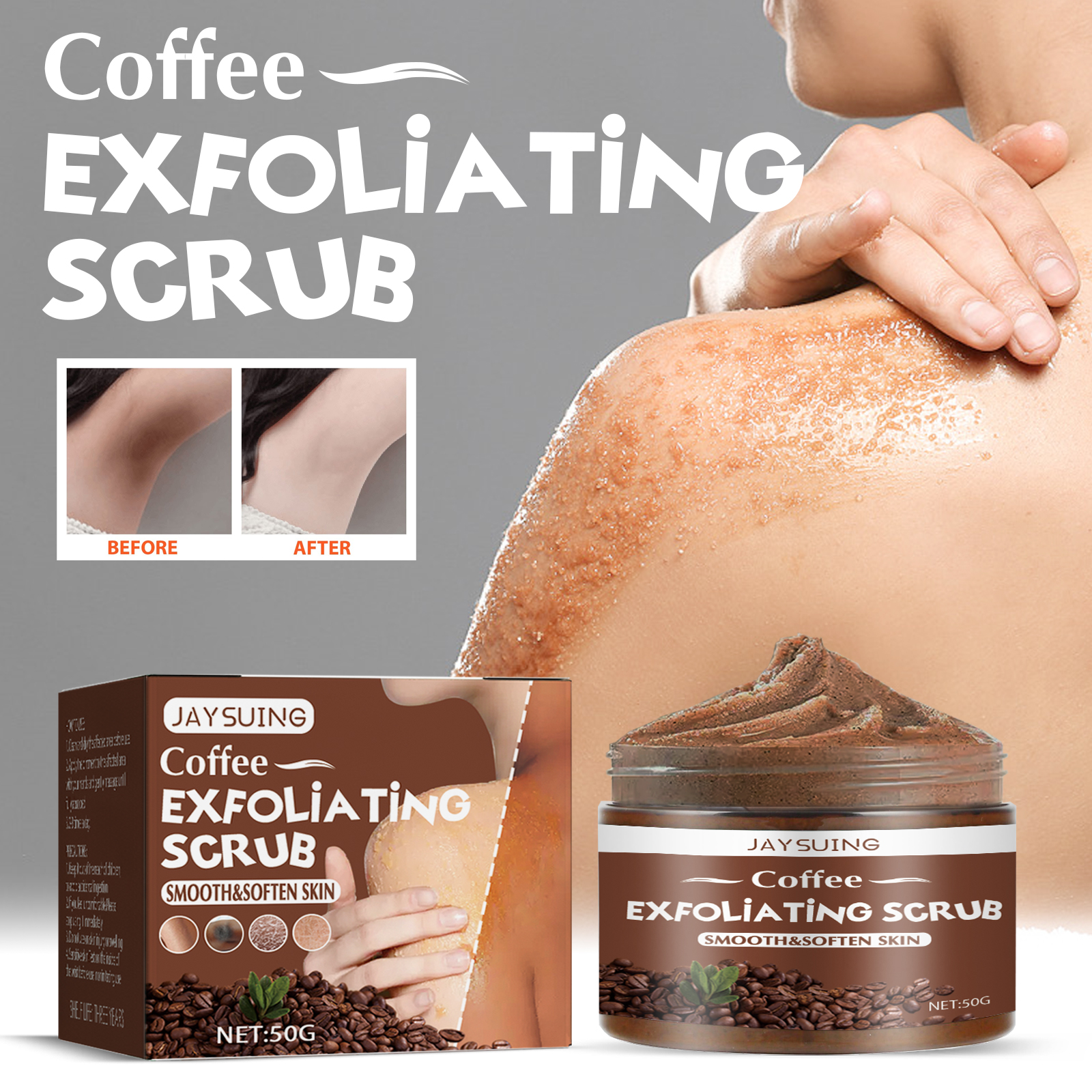 Our coffee scrubs contain coffee extract, lactic acid, sodium hyaluronate. It moisturizes and brightens your skin, smooths and cleanses, exfoliates, restores, gently removes dead skin, restores and brightens skin, cleans impurities, and reduces roughness and dullness. Its use method is very simple: after cleansing, apply an appropriate amount of scrub, gently massage in circles; Rough parts can be massaged longer and rinsed with water; Consistent use will have good results. Coffee scrub promotes metabolism, effectively softens cutin and tightens skin. Effectively remove dead skin, nourish and soften, cleanse and moisturize, soothe and repair skin.