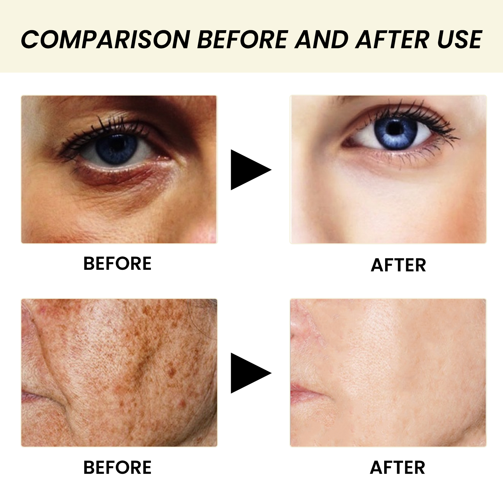 Our collagen anti-aging serum contains vitamin E and probiotics. It can solve skin aging problems such as deep wrinkles, fine lines, puffiness and dark circles around the eyes, bags under the eyes, dark spots, melasma, pigmentation, rough texture, and loose skin. Its use method is very simple: 1. After cleaning and conditioning, 2. Take 2-3 drops of essence and evenly apply to the face. Massage gently with fingertips until absorbed (it is recommended to use once in the morning and evening for better results). And there is no loose skin, no wrinkles, no dark spots after use.