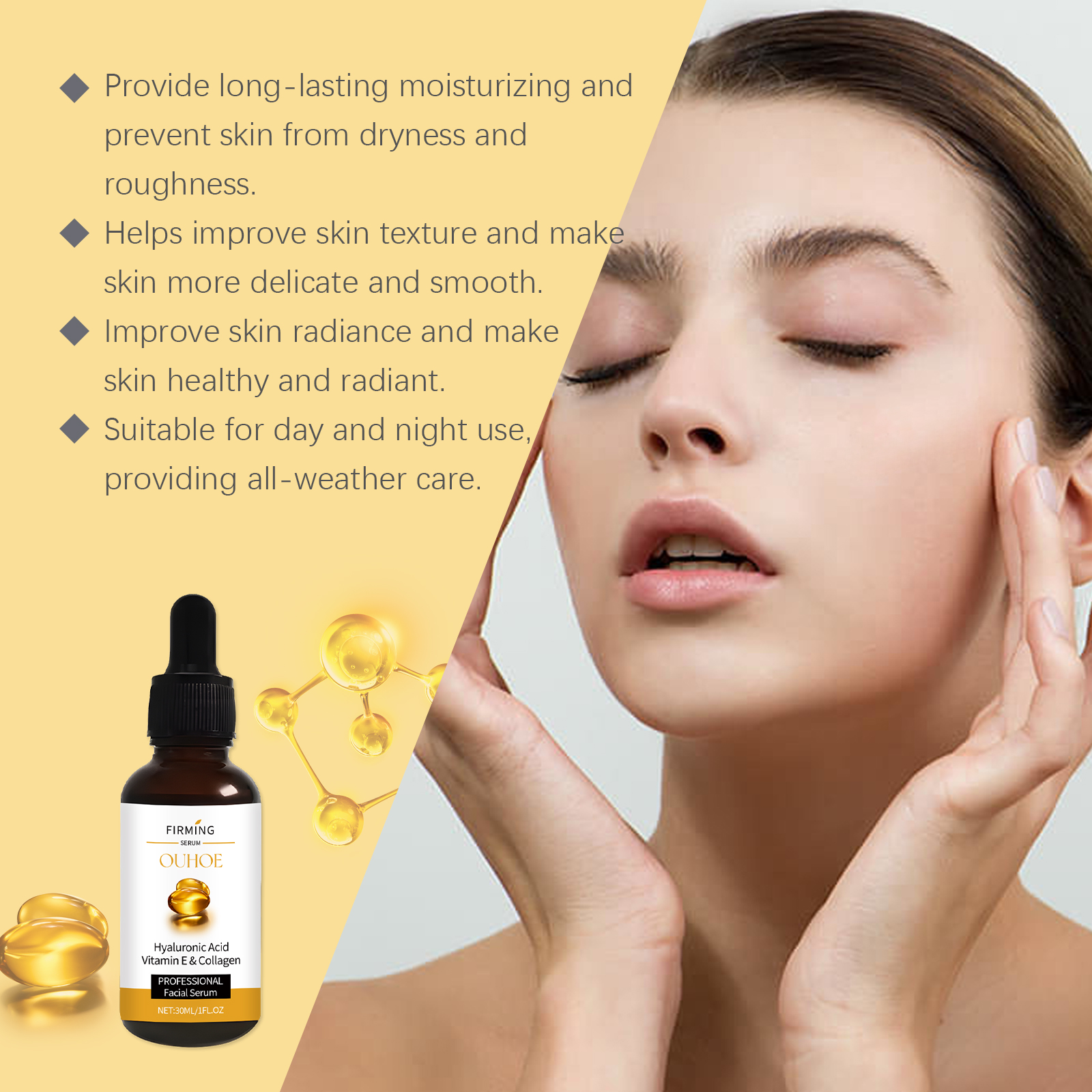 Our Collagen anti-wrinkle serum contains tocopherol (vitamin E), hyaluronic acid, collagen. It can improve skin elasticity and firm skin. Moisturize deeply to lock in moisture. Antioxidant, skin protection. Its use method is very simple: 1. Clean facial skin, keep dry; 2. Apply appropriate amount of the product evenly on the skin; 3. Massage gently from the inside. Collagen anti-wrinkle serum provides deep moisture and keeps skin hydrated and smooth. Highly effective formula to improve skin elasticity and reduce fine lines.