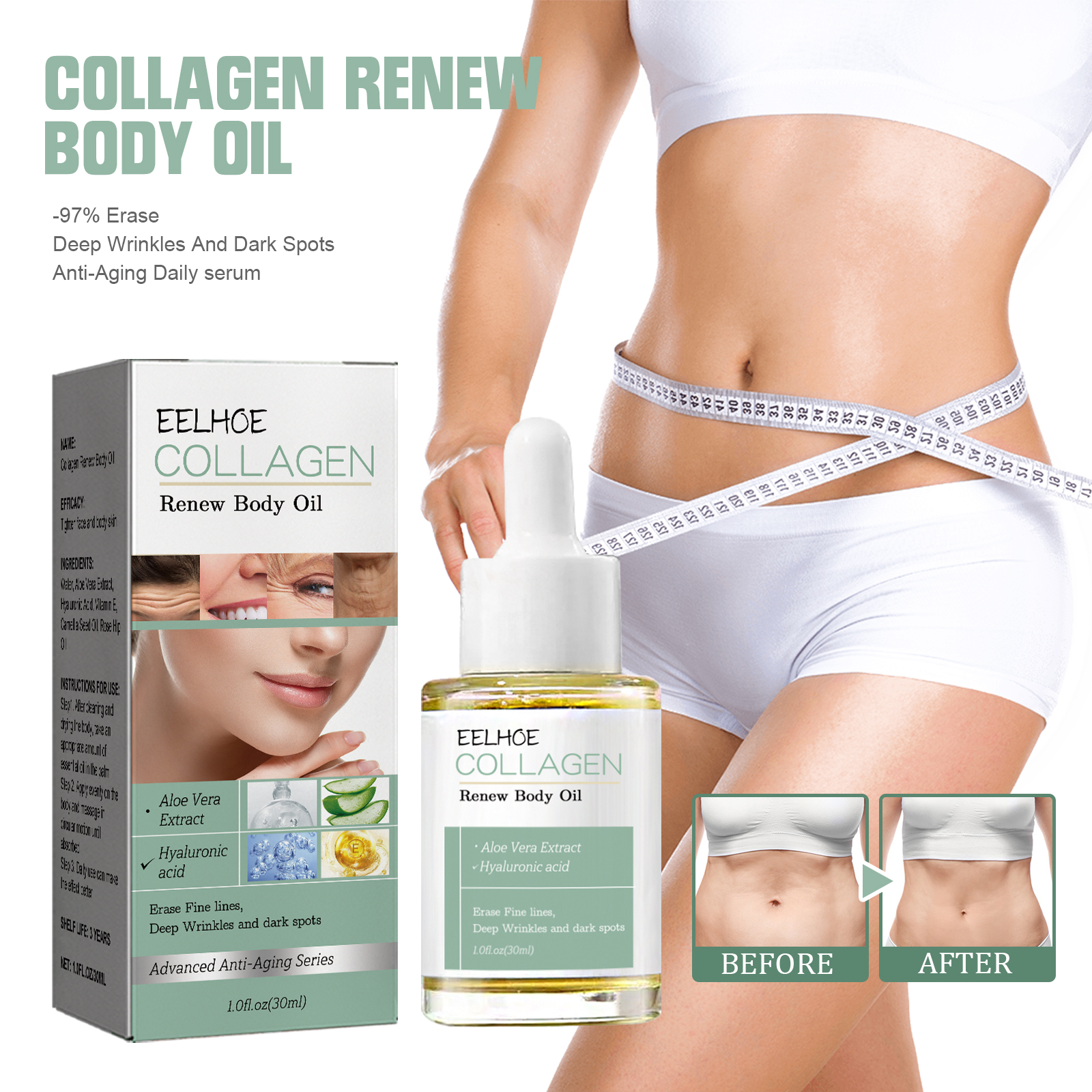 Collagen Body Essence Oil Firming Skin on Arms Belly Thighs Slimming Care Oil