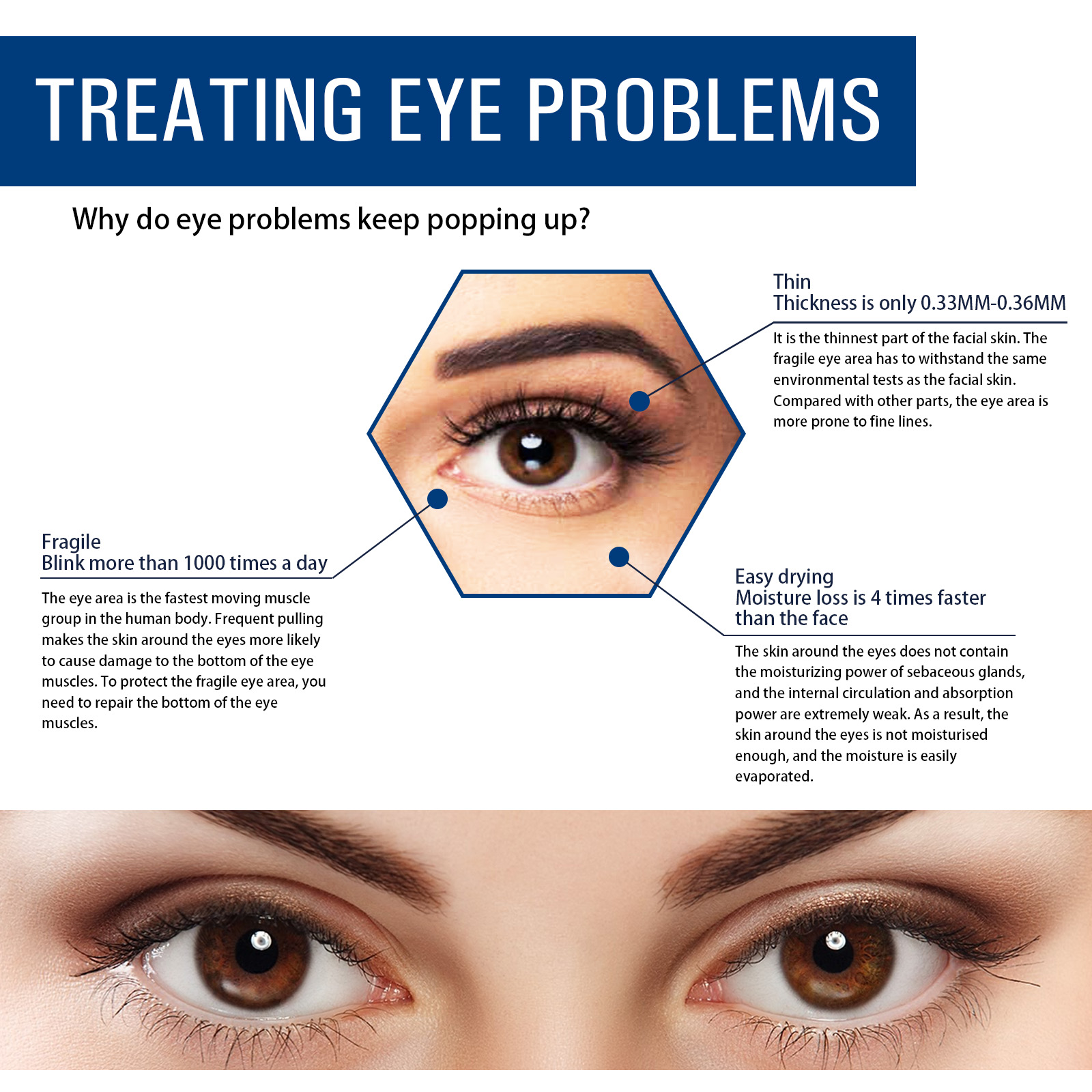 Our collagen cream for dark circles contains water, collagen and aloe vera extract. It repels the deep melanin in the skin, brightens the complexion and removes bags under the eyes. The way to use it is simple: after cleaning and toning, squeeze out an appropriate amount of eye cream and apply it to the eyes. Massage gently with your fingertips from outside to inside until absorbed, without pulling on the skin. The skin is full, firm, soft and shiny.