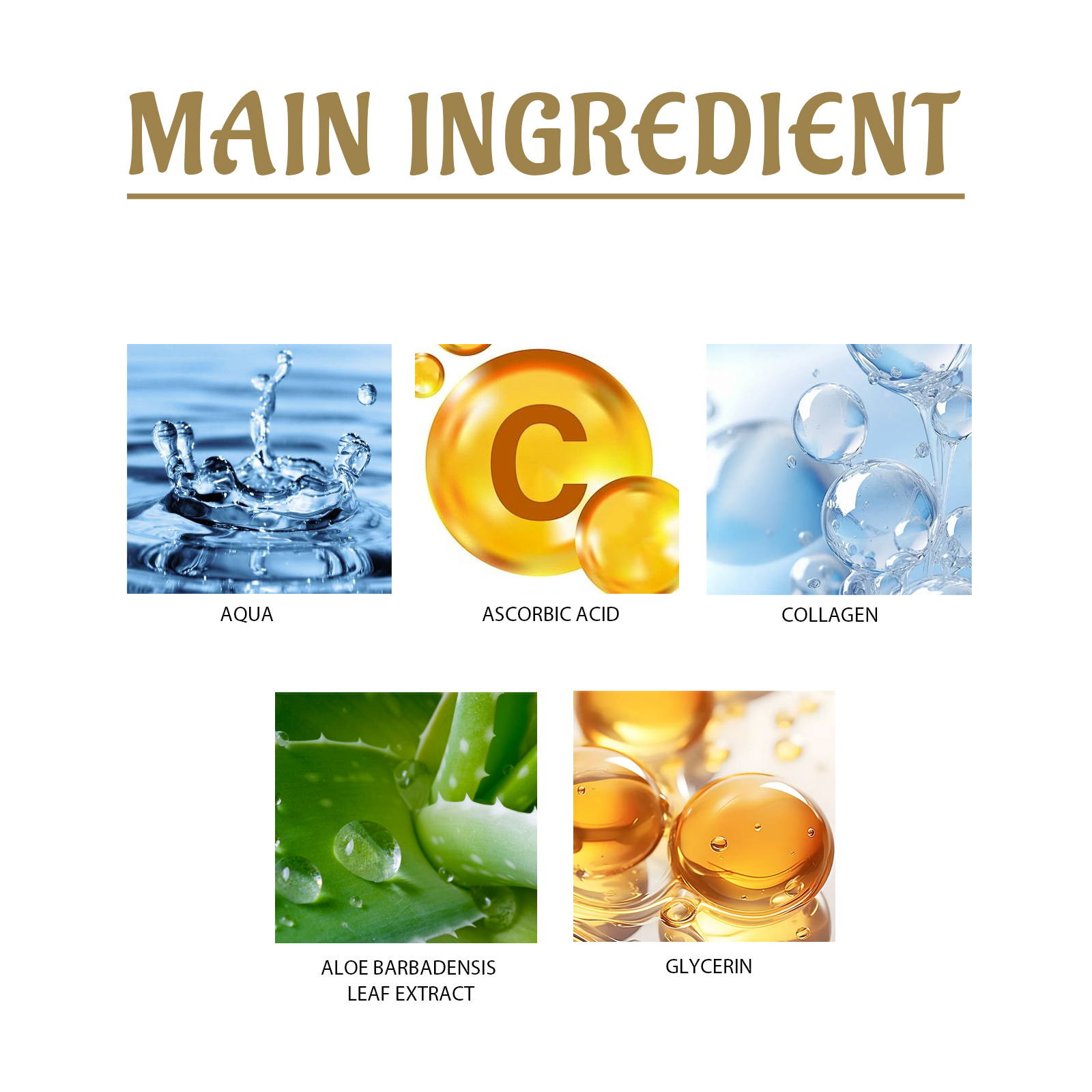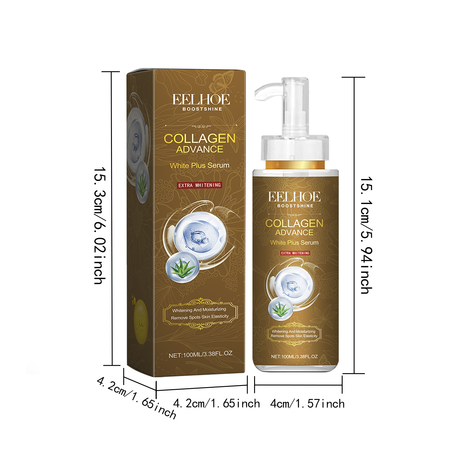 Our Collagen Advance White Plus Serum contains Collagen, Aloe Barbadensis Leaf Extract, Ascorbic Acid. It can enhance the elasticity of the skin, reduce the appearance of fine lines and wrinkles, make the skin younger and firmer, deeply moisturize the skin, and keep the skin hydrated and shiny. Its use method is very simple: clean facial skin, keep dry, apply appropriate amount of this product evenly on facial skin, gently massage, so that it can be completely absorbed. It can quickly penetrate the skin, replenish skin moisture, keep skin soft, moist and gentle ingredients, suitable for all skin types, including sensitive skin.