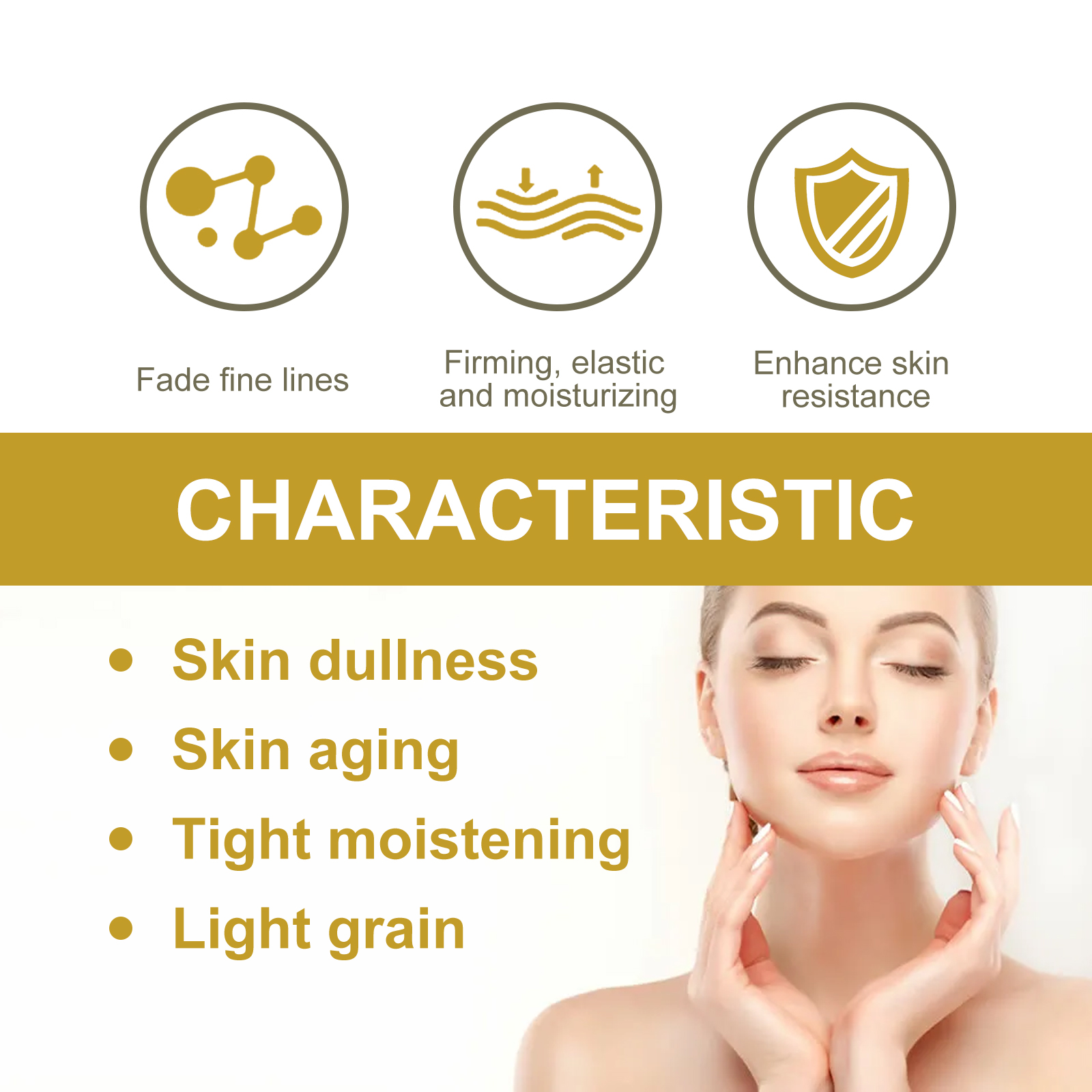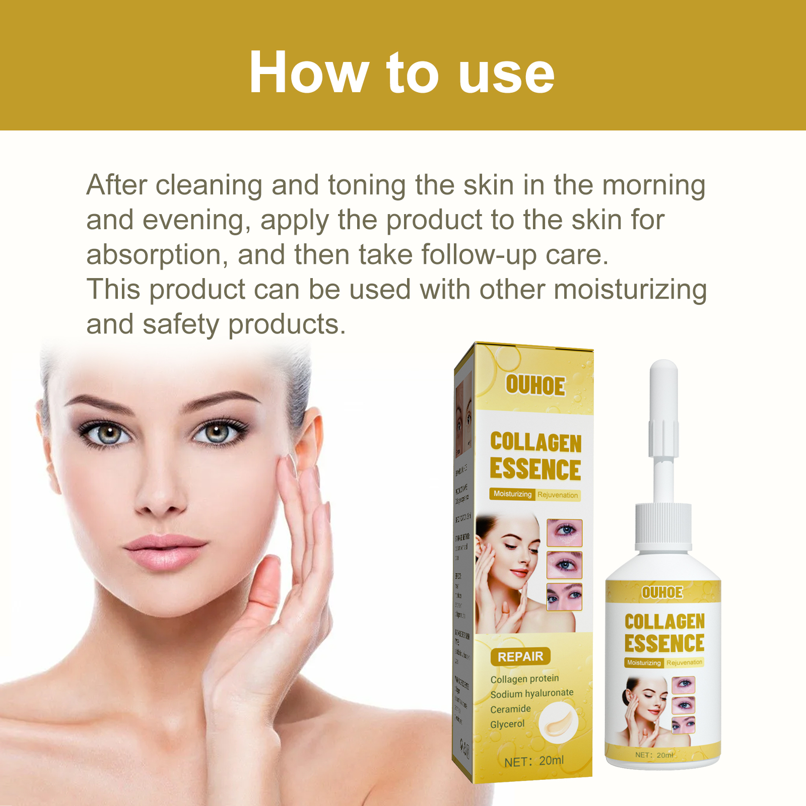 Our collagen serum contains glycerin, collagen, and sodium hyaluronate. It can lighten fine lines and tighten, reduce water loss, stimulate collagen synthesis in the skin, enhance skin elasticity, and prevent skin aging. Its use method is very simple: First, after cleansing and toning in the morning and evening, apply this product to the skin, and then follow up care. This product can be used in combination with other moisturizing and safe products. After use, it helps to reduce the appearance of fine lines and wrinkles, enhance skin shine, adjust the balance of water and oil, soothe the astringent skin, and make the skin clean and bright.
