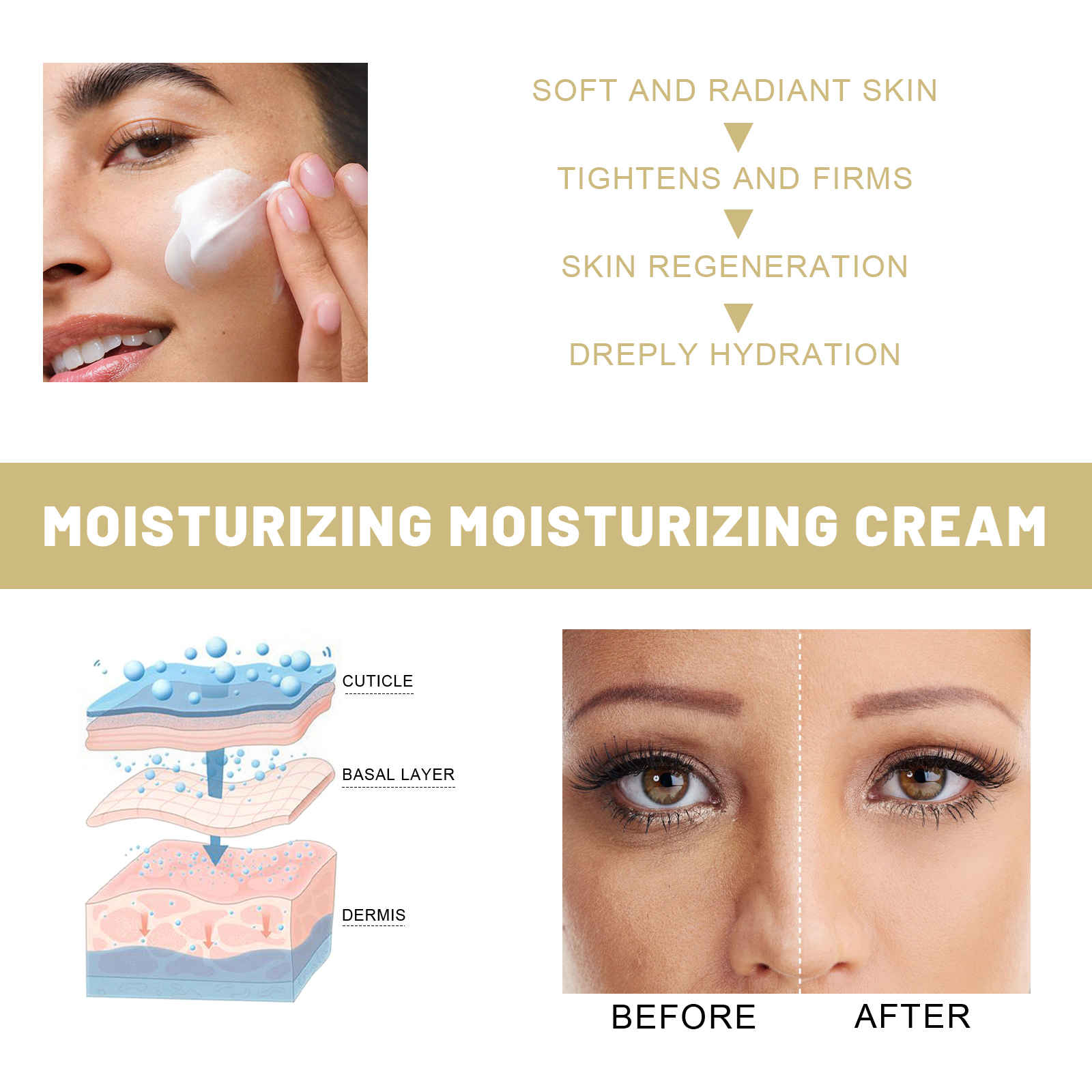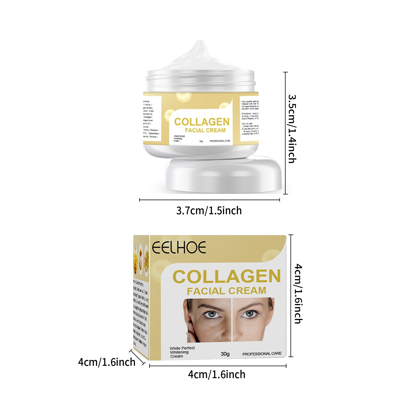 Our collagen cream contains glycerin, vitamin E, and shea butter. It helps to lighten and moisturize. Its application method is simple: wash and pat dry skin, apply a small amount to face and neck, massage in a circular way, morning and evening for best results. After use, the texture is delicate and moist, not greasy, and the feeling of rubbing mud and stickiness is bid farewell.