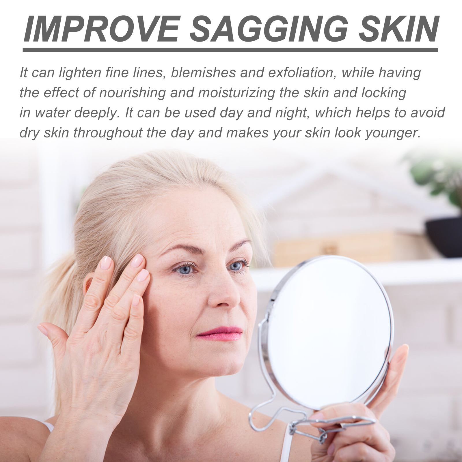 Our collagen cream contains hyaluronic acid, vitamin C and retinol. It lightens fine lines, blemishes and exfoliates, while nourishing and moisturizing the skin and trapping moisture in deep layers. It can be used both day and night, which helps avoid skin dryness throughout the day and makes your skin look younger. Its use method is very simple: after cleansing, take appropriate amount of this product evenly spread on the face skin, gently massage to help absorption. A cream for all skin types that can effectively improve sagging skin and restore elasticity and shine.