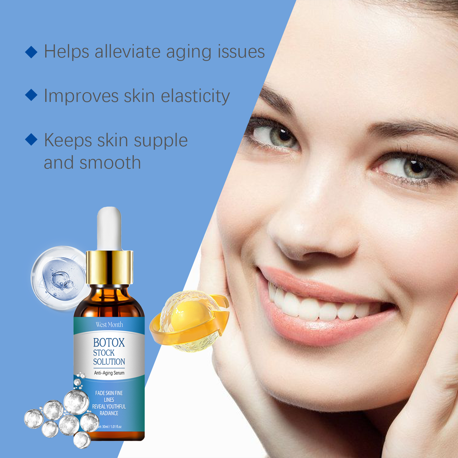 Our collagen face serum contains collagen, hyaluronic acid and vitamin C. It can significantly reduce fine lines and wrinkles and restore smooth skin. Add collagen to enhance skin elasticity and reshape facial contours. Its use method is very simple: 1. Wash your face. 2. Take a proper amount of serum with an eyedropper and apply it to your face. 3. Gently massage outward from the center of the face, in a circle, until fully absorbed. Collagen facial essence deeply hydrates, locks in water for a long time, and leaves skin plump and bright.