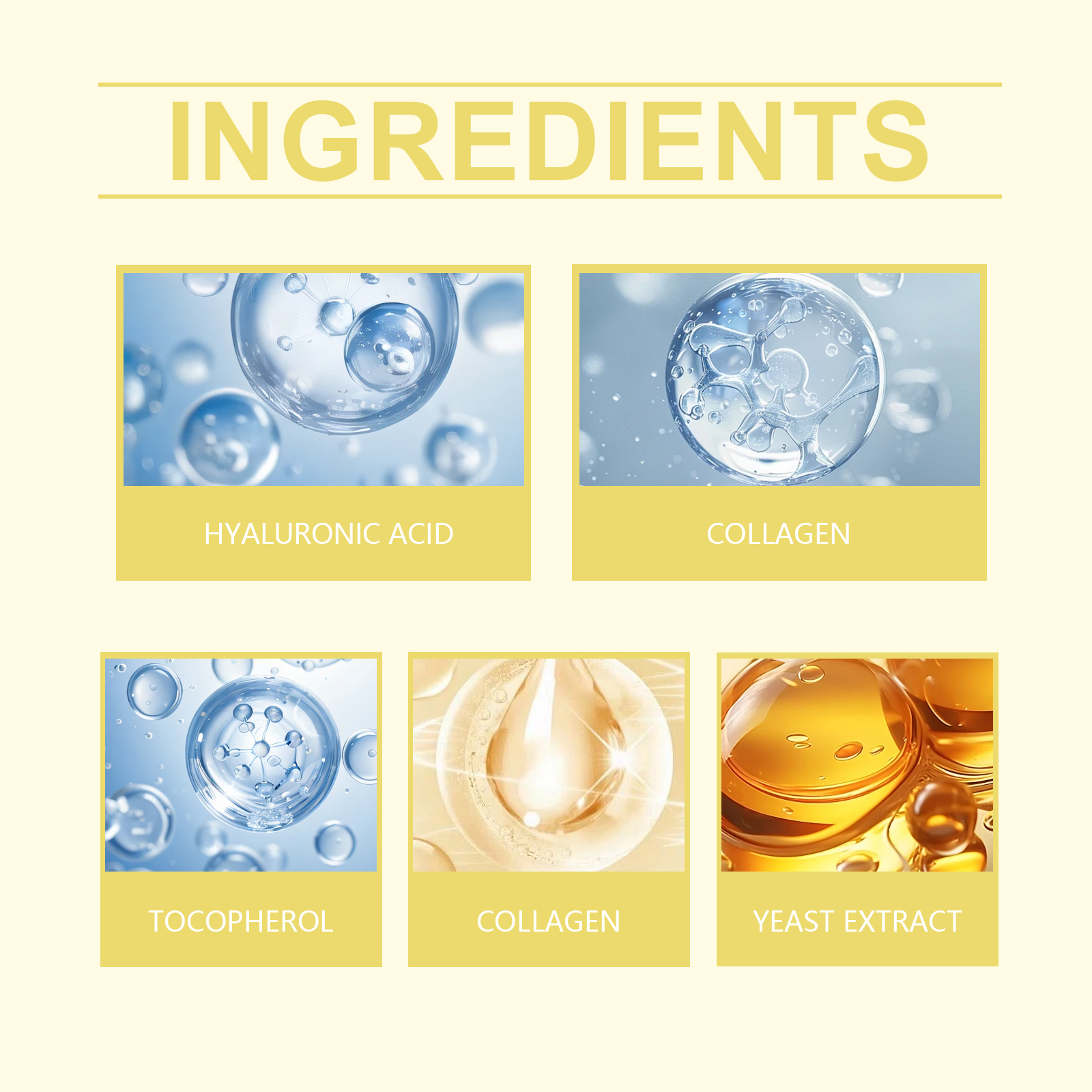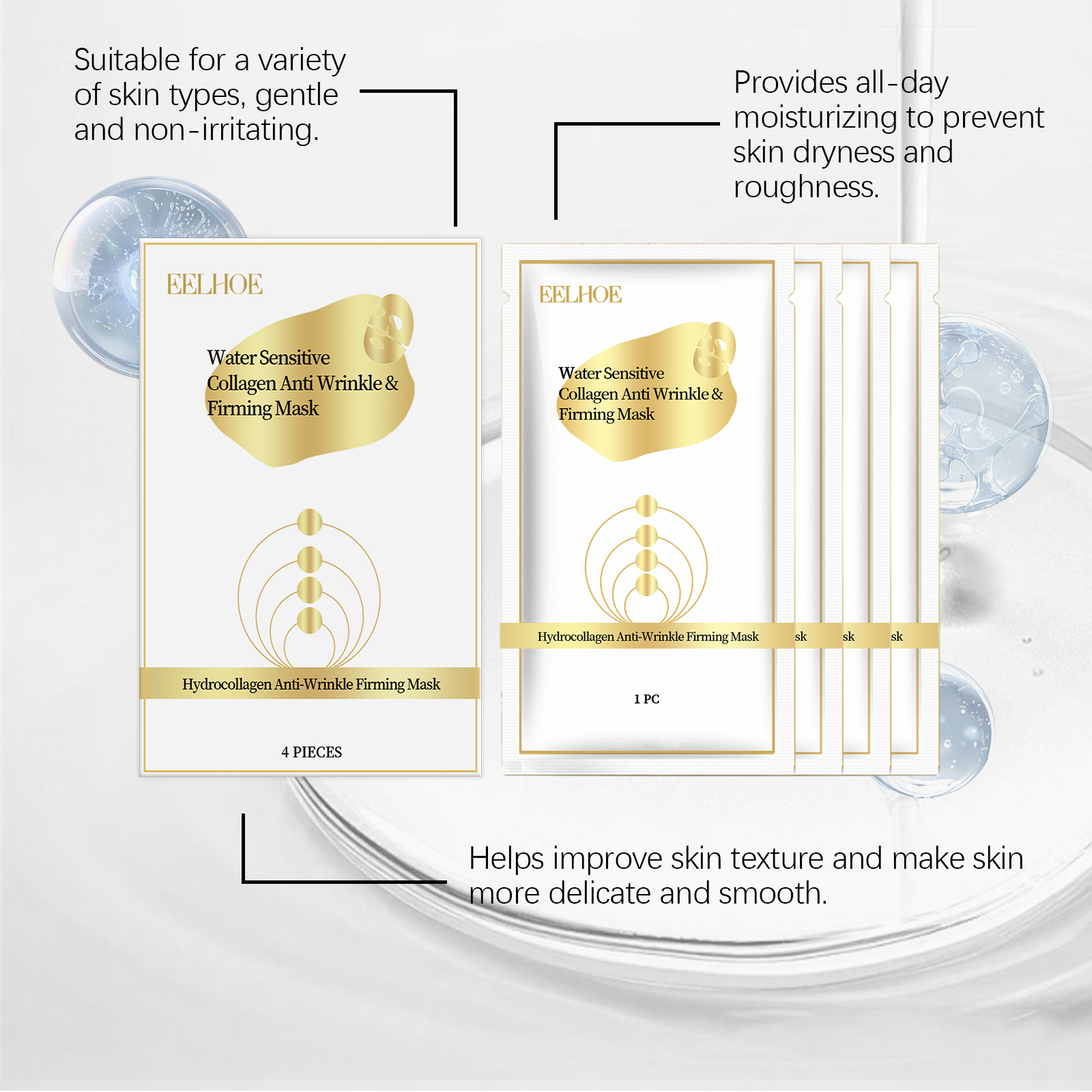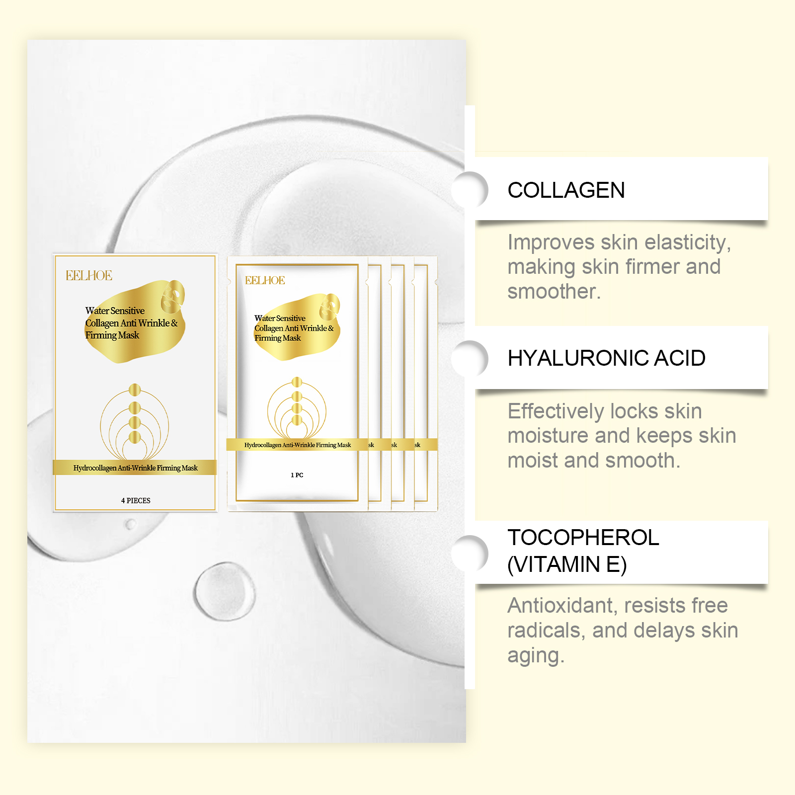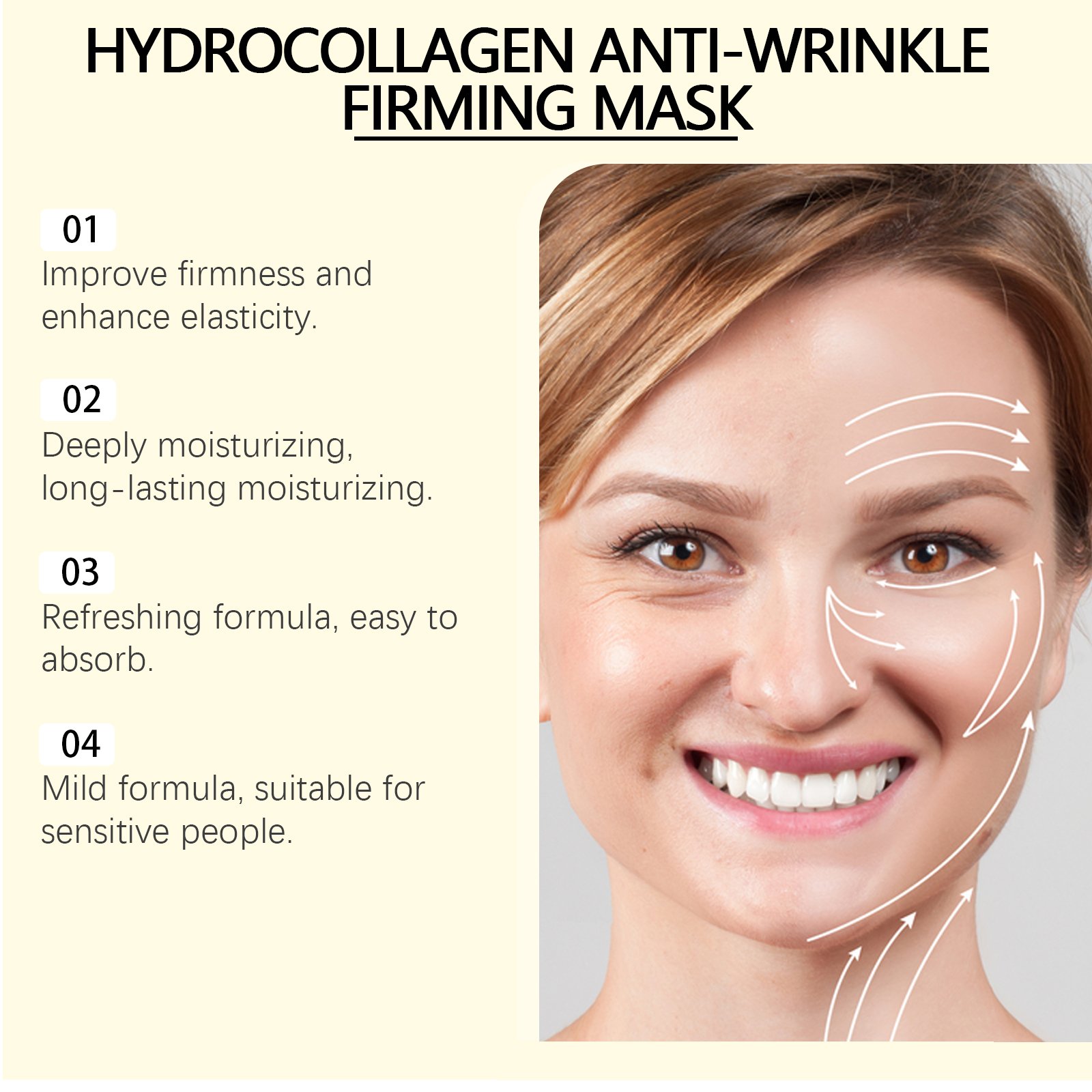 Our collagen mask contains collagen, yeast extract and hyaluronic acid. It can lock in moisture for a long time and nourish every inch of the skin; Reduces fine lines and wrinkles for smoother skin. Its application method is simple: 1. Clean and dry facial skin. 2. Apply a mask to your face and spread evenly. 3. Wait 15-20 minutes, then remove the mask. Improves skin elasticity and makes skin firm and smooth. Effectively locks in skin moisture and keeps skin hydrated and smooth. Anti-oxidation, anti-free radical, delay skin aging.