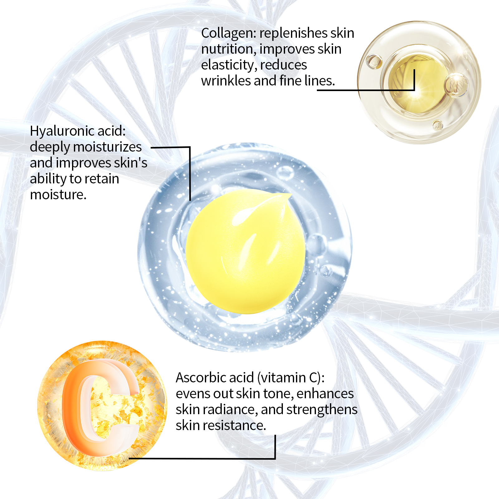 Our collagen cream contains glycerin, collagen. It can boost metabolism and improve skin firmness. Its application method is very simple: clean dry facial skin, apply appropriate amount of this product evenly on the face, gently massage until absorbed. And can lock in moisture for a long time, nourish every inch of the skin. Reduces fine lines and wrinkles for smoother skin.