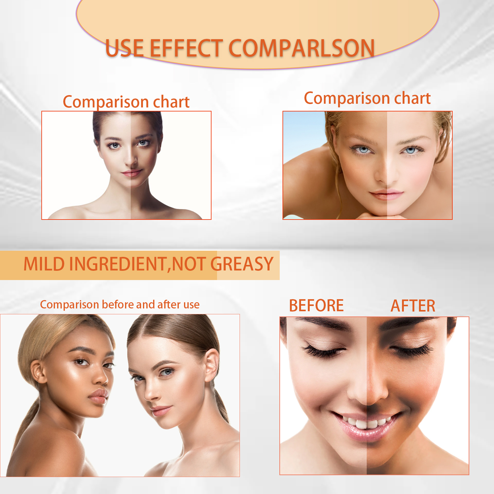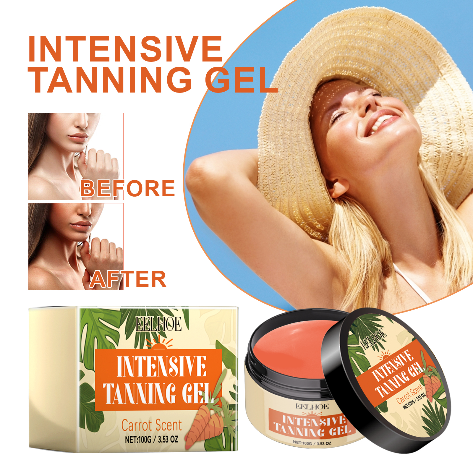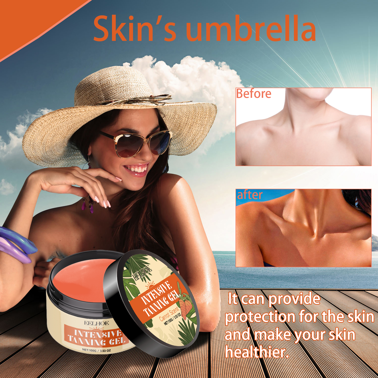 Our tanning gel contains Butyrospermum Parkii (Shea Butter) Oil, Daucus Carota Sativa (Carrot) Seed Oil, Cocos Nucifera (Coconut) Oil. It speeds up the tanning process, gives you a healthy tan, makes you more confident and beautiful, deeply moisturizes the skin, and makes the skin firmer and more moisturized. Its application method is very simple: wash and dry the skin, apply the product evenly to the desired area, wait 4-6 hours to get an even tanning effect. Can provide protection for the skin, make your skin healthier, easy to use, quick tan, let you easily get a beautiful tan.