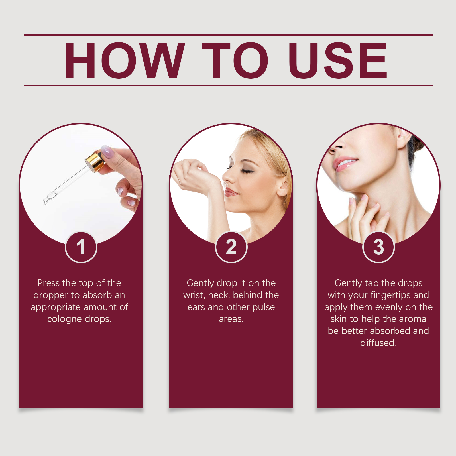 Our dating cologne contains propylene glycol, bergamot fruit extract, lime fruit extract. It can exude a unique charm. Its use method is very simple: press the top of the dropper to absorb the right amount of cologne water, gently drop it on the wrist neck, behind the ear and other pulse areas, gently beat the drop with the fingertips, evenly spread on the skin, to help the aroma is better absorbed and spread. And it will stay fragrant all day long.