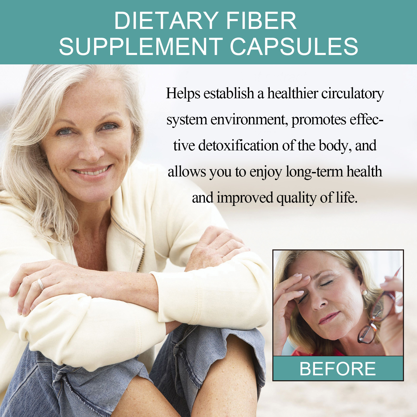 Our dietary fiber supplement capsules contain glycerin and vitamin C. It can improve blood circulation in the body, increase metabolism, let all parts of the body better access to oxygen and nutrients, and keep you healthy. Its use is simple: open the package and take 1-2 capsules at a time, up to 2 times a day. It can also increase your activity level and make you feel more relaxed and comfortable. Helps build a healthier circulatory environment, promotes effective detoxification of the body, and allows you to enjoy long-term health and improved quality of life.