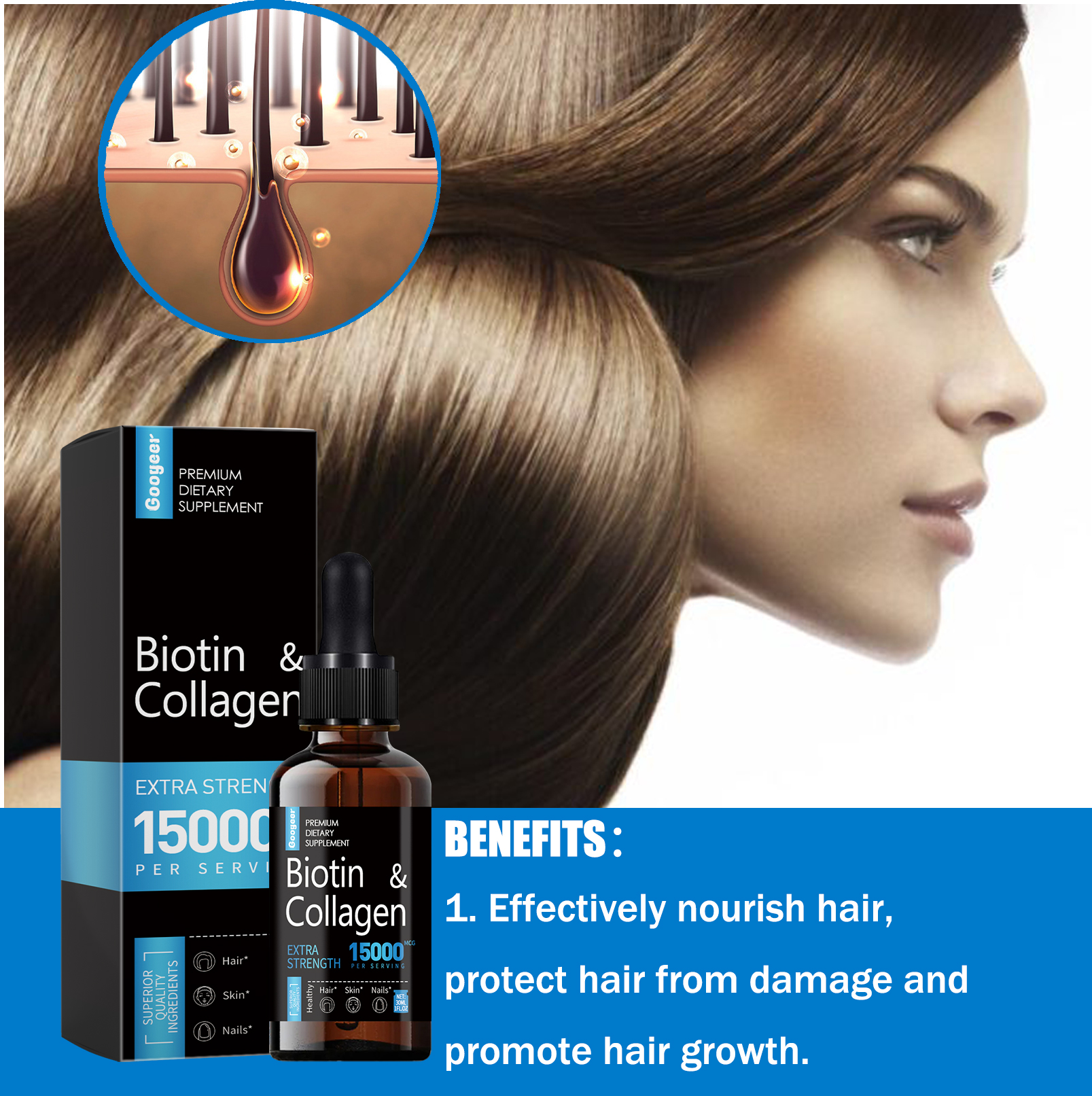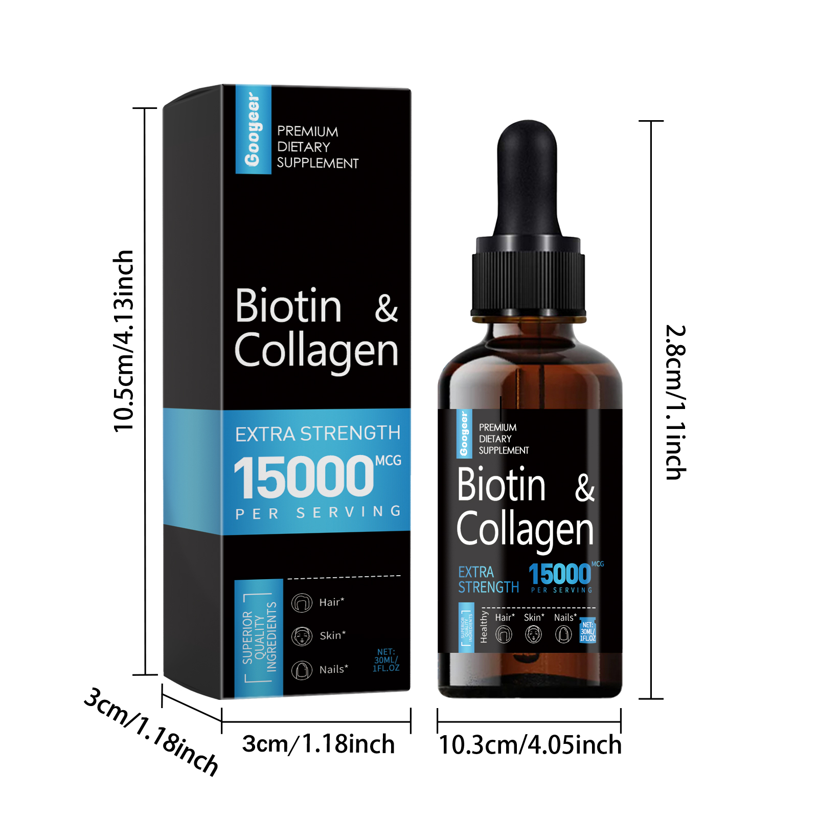 Our Premium Dietary Supplement contain Biotin, Collagen, Ginseng Extract. It can effectively nourish the hair, protect the hair from damage, promote hair growth, can tighten the skin, improve the elasticity of the skin, effectively reduce wrinkles and delay aging, but also can repair the surface of the nail, improve the luster, let your nails back to the original beauty. The way to use it is very simple: shake well before use, 1-2 drops each time, 1-2 times a day. Can repair nails, nourish hair, fade facial wrinkles, firm skin.