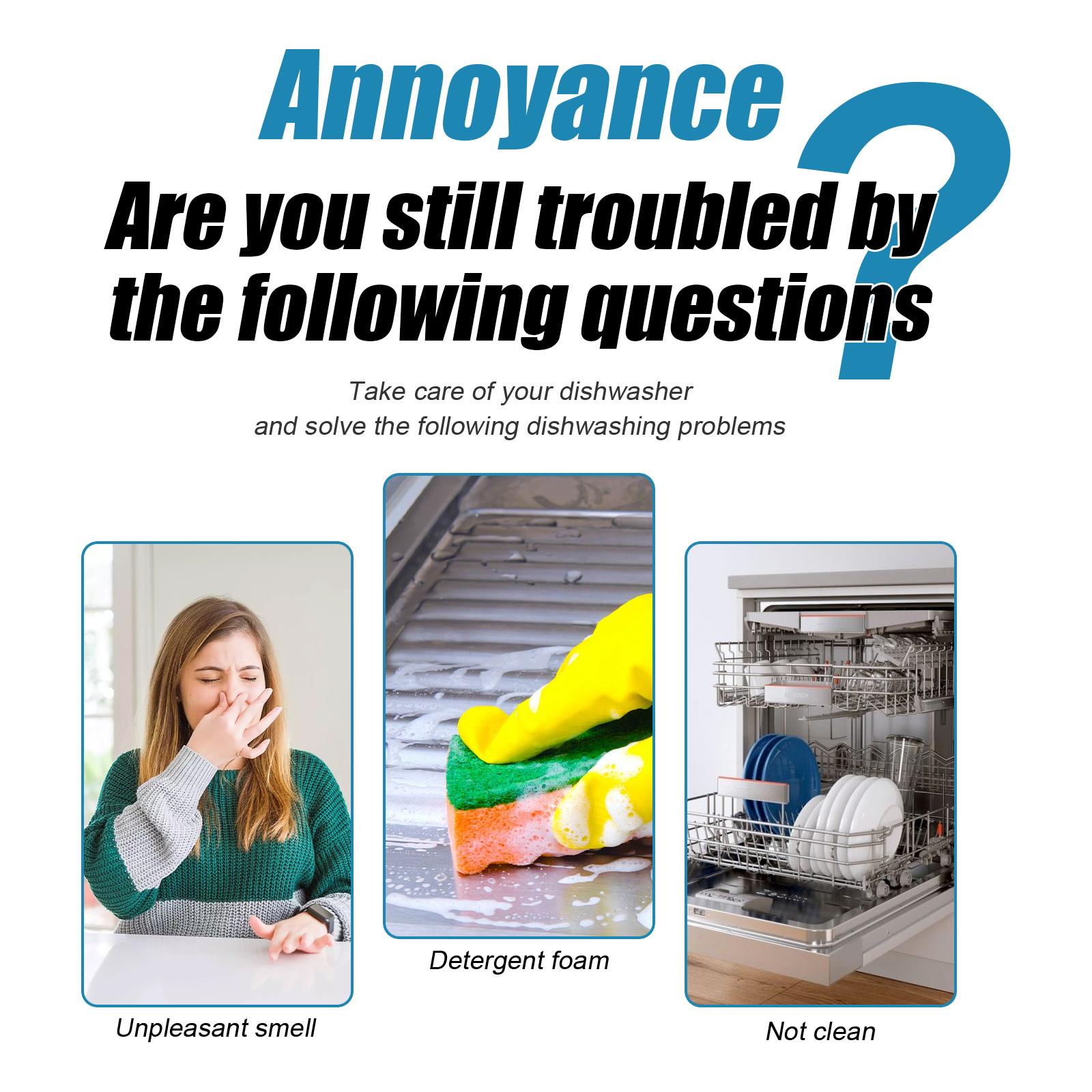 Our dishwasher dirt remover tablets contain sodium citrate, bioenzyme, sorbitol. It can solve the dishwasher detergent foam, odor, keep the dishwasher clean. The way to use it is very simple: please empty the dishwasher before use, then put the effervescent tablets in the detergent tray, and then turn on the dishwasher and let it run automatically. And it cleans the dishwasher.
