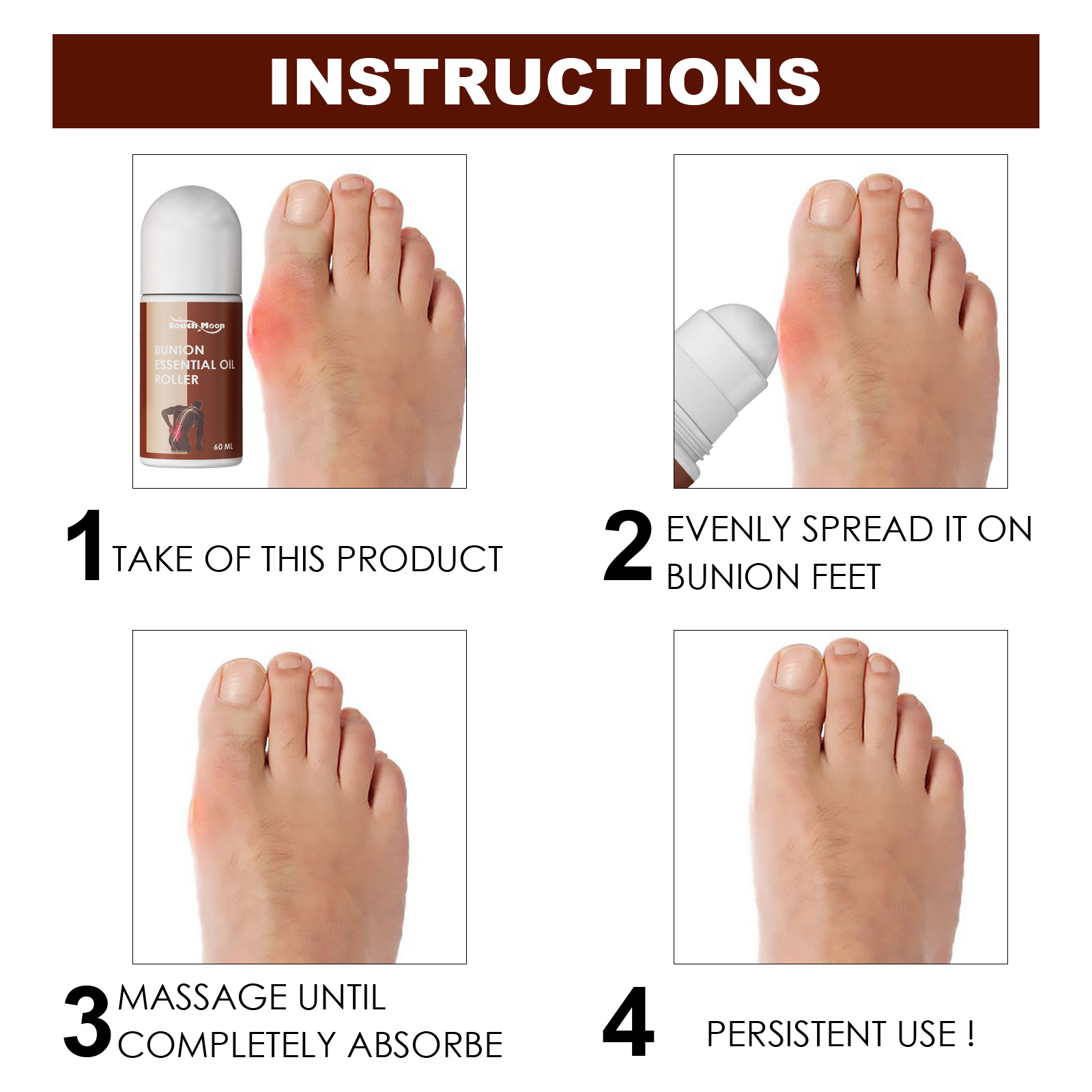 Our bunion essential oil roller contains saffron, Millennium Health. It can provide quick local relief to reduce pain and swelling. Effective, natural ulcer correction improves blood circulation without drugs. The way to use it is simple: use this product, evenly apply it to the wart, massage until it is completely absorbed, and continue to use! . And can provide quick local relief to reduce pain and swelling. Effective, natural ulcer correction improves blood circulation without drugs.