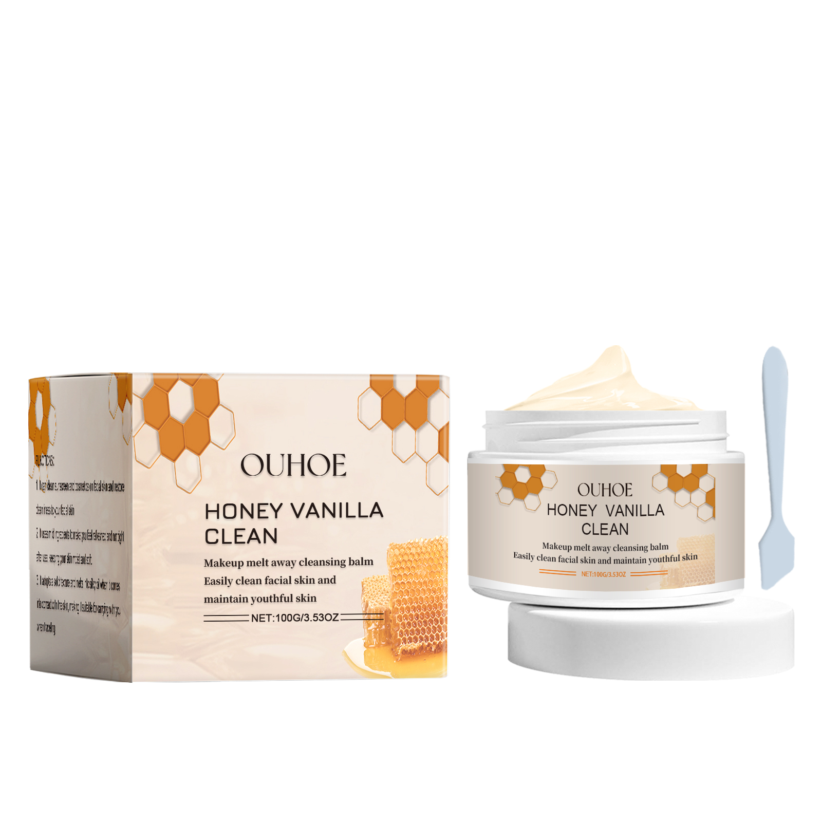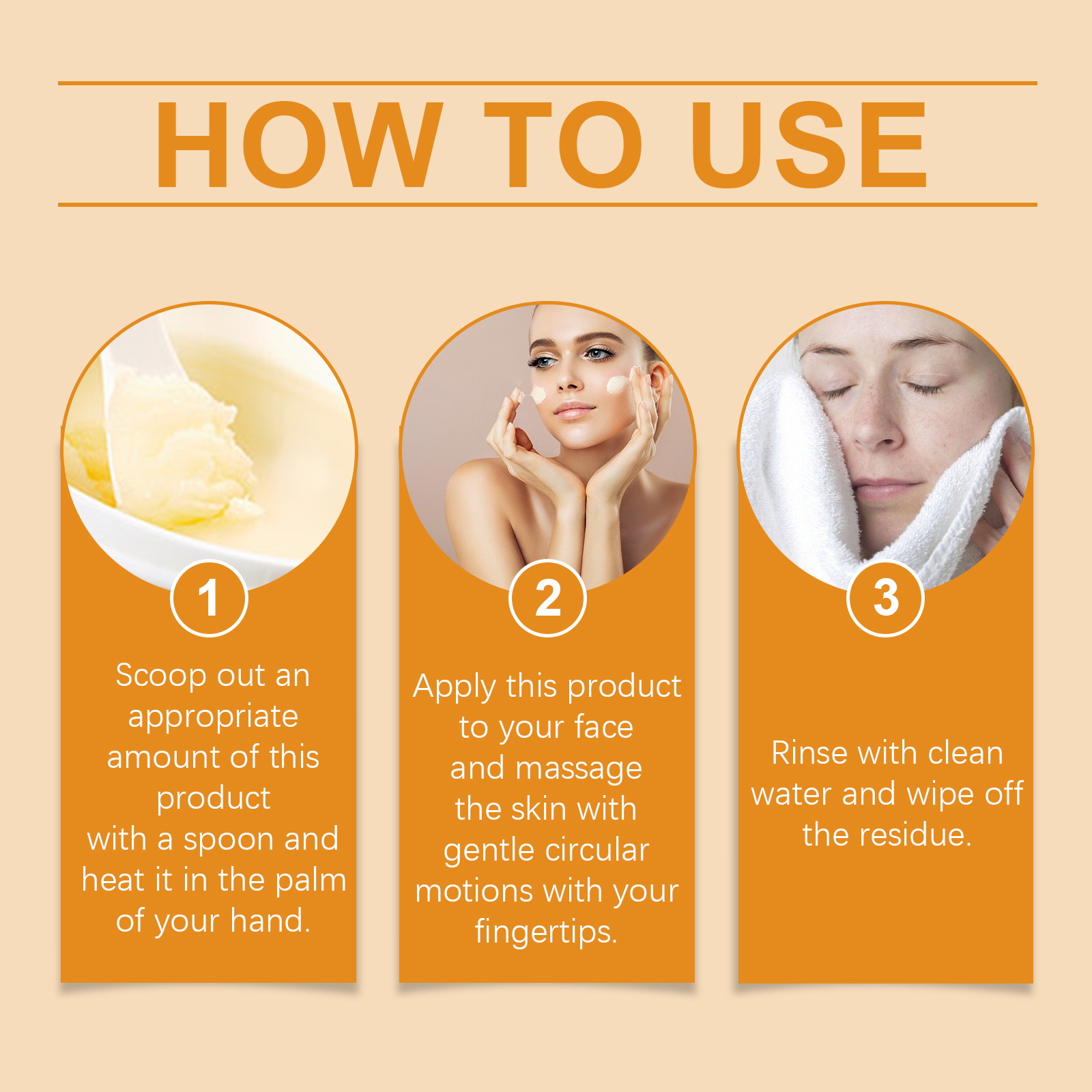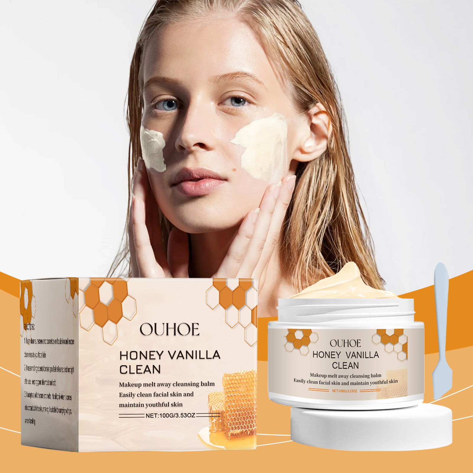 Our exfoliating cleanser contains honey, vanilla fruit extract and turmeric root extract. It gently and effectively removes dead skin. Deep clean pores to reduce oil and dirt buildup. Its use method is very simple: 1. Scoop out the right amount of this product with a spoon and heat it with the palm of your hand. 2. Apply the product to the face and gently massage with fingertips in circular motions. 3. Rinse with water and wipe off residue. Regular use can improve skin texture and increase skin elasticity.