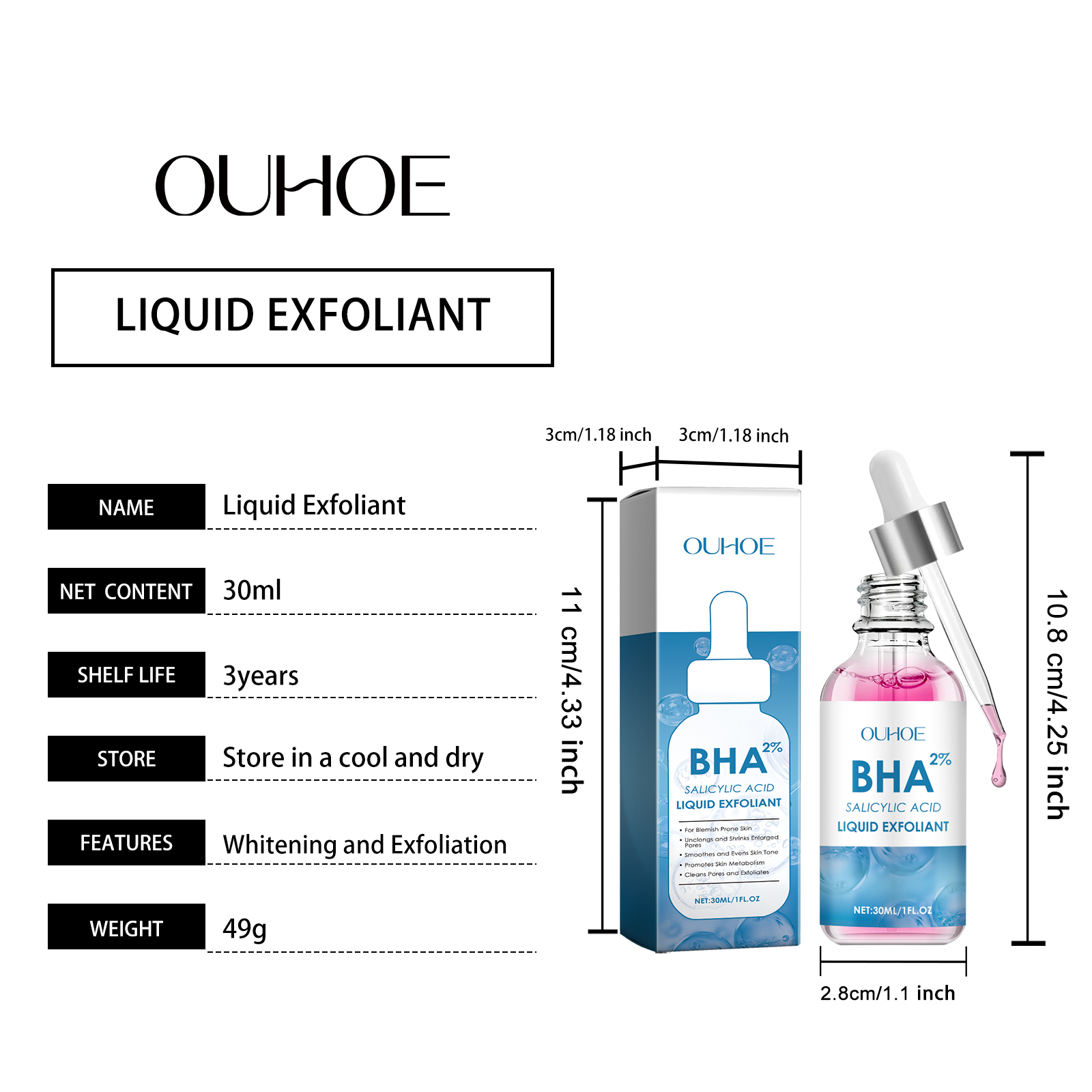 Our exfoliating serum contains vitamin C(ascorbic acid), glycerin. It can help remove old dead skin cells and make the skin smoother and brighter. Its application method is very simple: clean the facial skin to keep the skin dry, apply appropriate amount of this product evenly on the facial skin, gently massage until completely absorbed. And can remove old dead skin cells, help improve skin texture, make skin smooth.