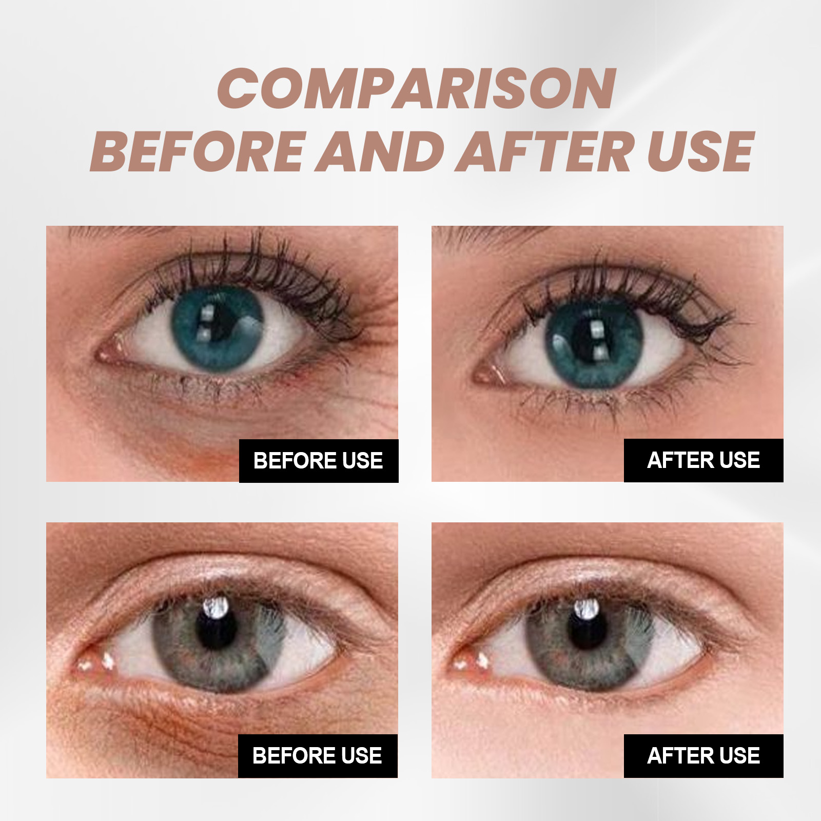Our eye moisturizers contain collagen and hyaluronic acid. It can improve skin slack, dull, there are obvious fine lines, skin smooth, delicate, firm and elastic. Its application method is simple: 1. Clean the skin and keep dry around the eyes. 2. Apply proper amount of this product to the skin around eyes. 3. Gently massage until fully absorbed. And can make our eyes not easy to age, look more divine.