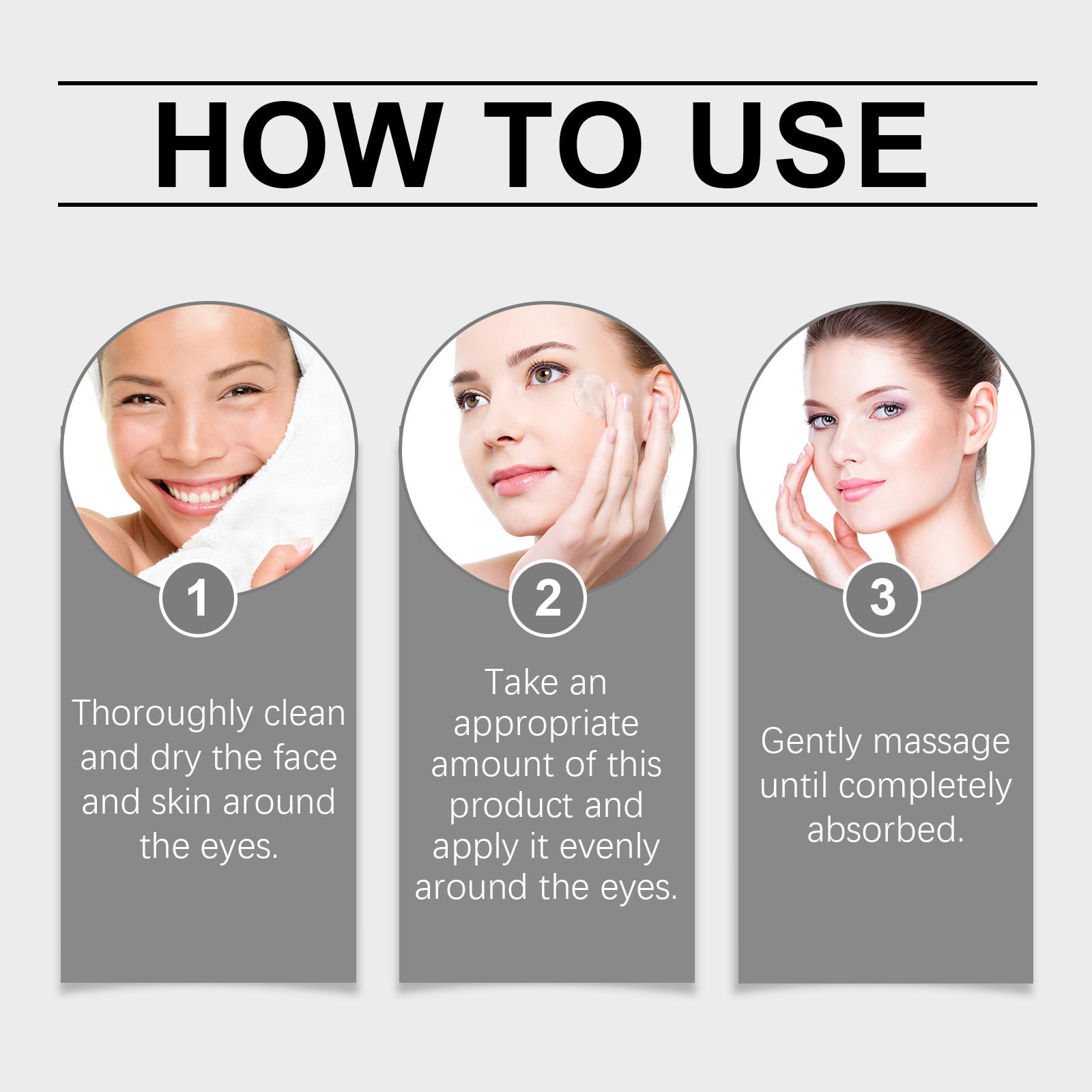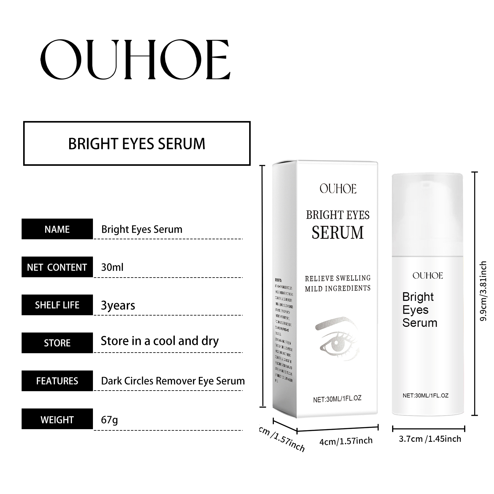 Our eye serum contains coffee seed extract, hyaluronic acid. It can improve the elasticity of the skin around the eyes, tighten the bags under the eyes, and improve the black eye roll. Its application method is very simple: thoroughly clean and dry the face and the skin around the eyes, apply an appropriate amount of this product evenly to the eyes, and gently massage until completely absorbed. And can be uniquely formulated, deep into the skin, effectively reduce fine lines and wrinkles.
