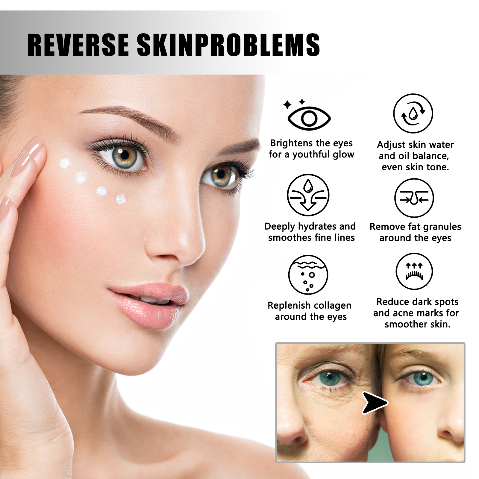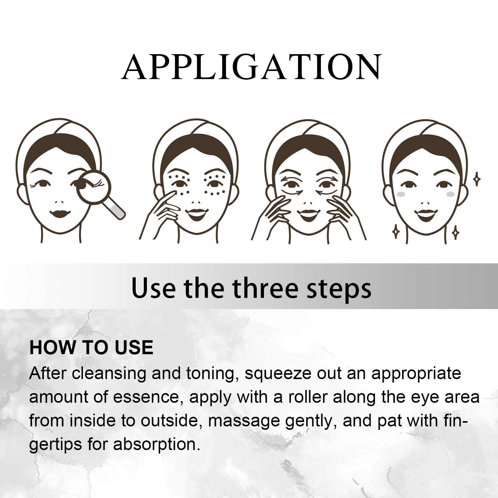 Our eye serum balls contain glycerin and hydroxyethyl cellulose. It can reduce the appearance of fine lines and wrinkles around the eyes, make the skin around the eyes full and smooth, and effectively brighten and tighten. Its use method is very simple: first, after cleansing and toning, squeeze out an appropriate amount of serum, apply it with a roller from inside to outside along the eyes, gently massage it, and dab it with your fingertips. After use, it can improve the fine lines, improve the premature aging skin around the eyes, soothe and brighten the eyes, help eliminate dark circles, restore the vitality of the eye skin.