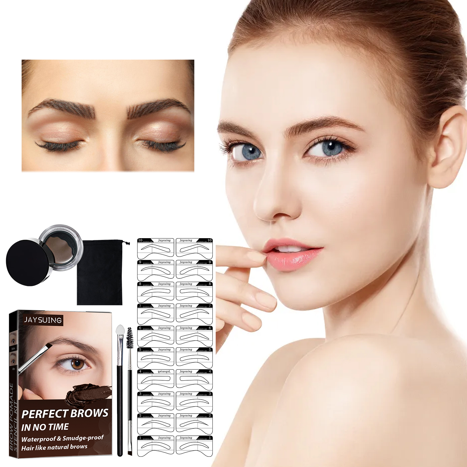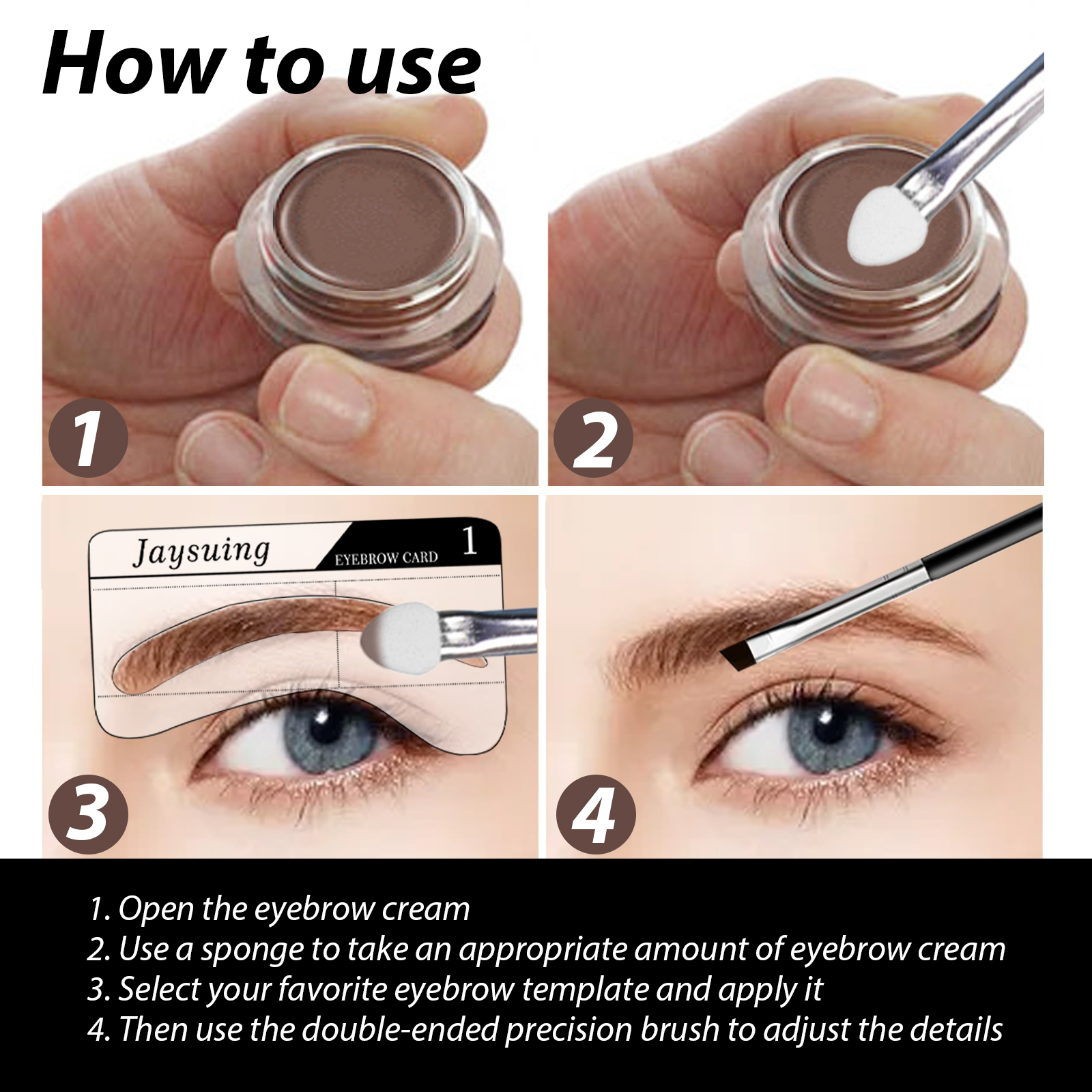 Our brow cream set contains propylene glycol, beeswax, arginine. It can be waterproof, anti-sweat, anti-makeup, easy to color, lasting without makeup without smudging. Its application is simple: open the brow cream, take the appropriate amount of brow cream with a sponge, select your favorite eyebrow template and apply it, then adjust the details using a double-ended precision brush. Eyebrow cream sets create a natural and perfect eyebrow shape, save time, will not affect the brow root and skin, will not cause allergies and injuries, will not inhibit the growth of new hair bundles.