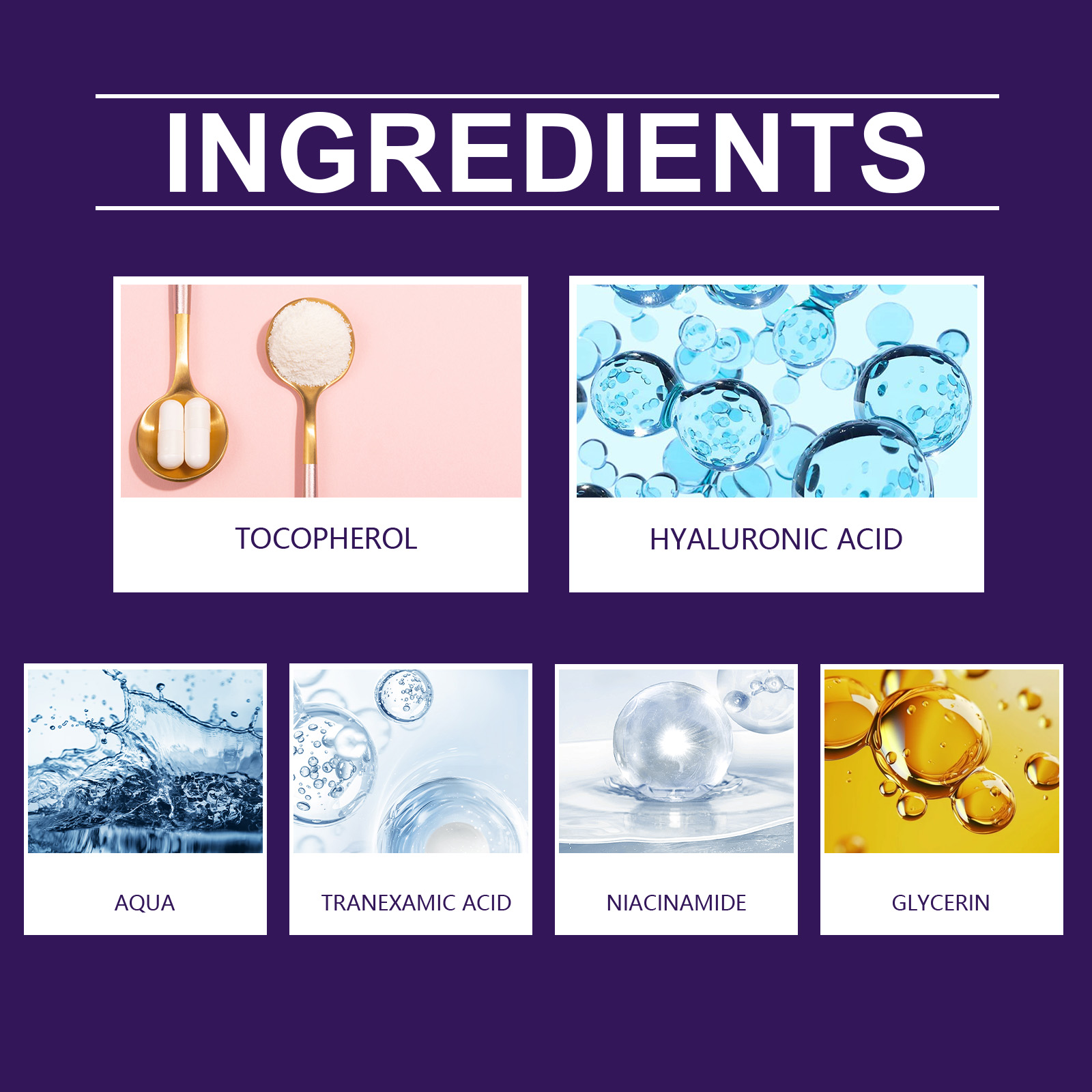 Our facial treatment serum contains thrombotic acid, glycerin, which can lighten the skin tone and improve the dull. Its use method is very simple: after cleansing and toning, take appropriate amount of this product evenly apply to facial skin, gently massage until completely absorbed. It can also deeply moisturize, lock in moisture, and keep skin moist and soft.