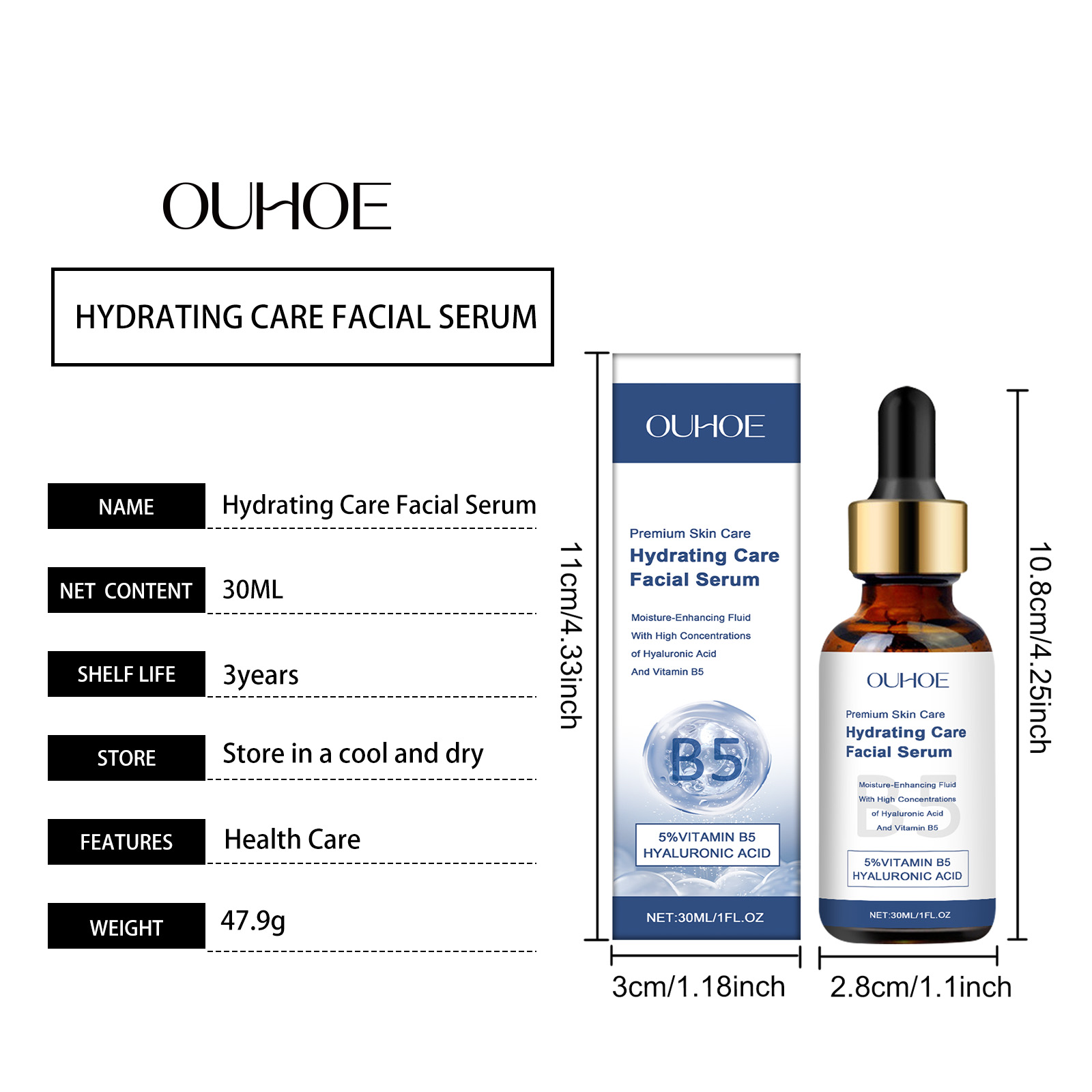 Our B5 Facial moisturizing serum contains hyaluronic acid, panthenol (vitamin B5). It moisturizes the skin for a long time, penetrates deep into the skin, and leaves the skin smooth and soft. Tighten pores, increase firmness, and help the overall skin texture become more delicate. Its application method is simple: apply appropriate amount of this product evenly to the face and neck to promote absorption, thoroughly clean and dry the skin. And can adjust oil secretion, improve oil problems, keep fresh and not greasy.