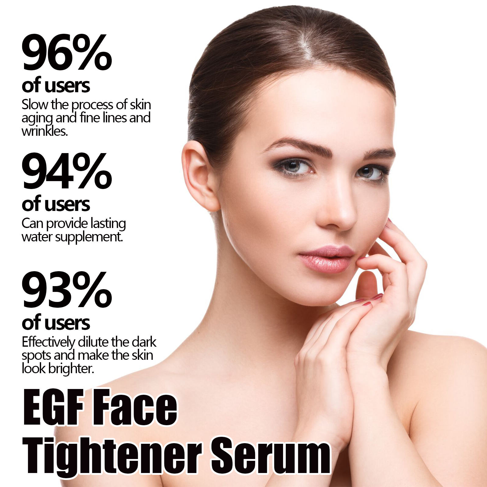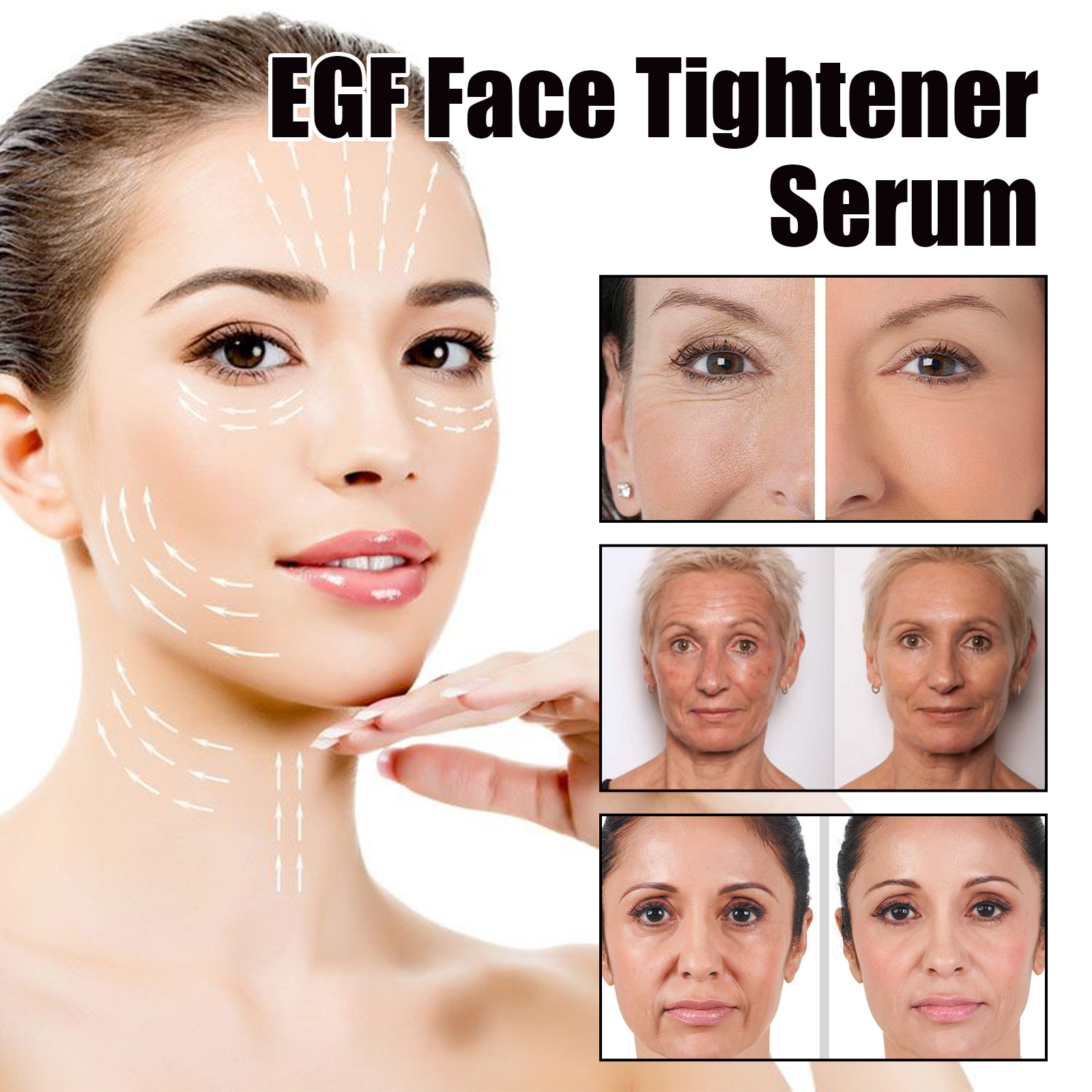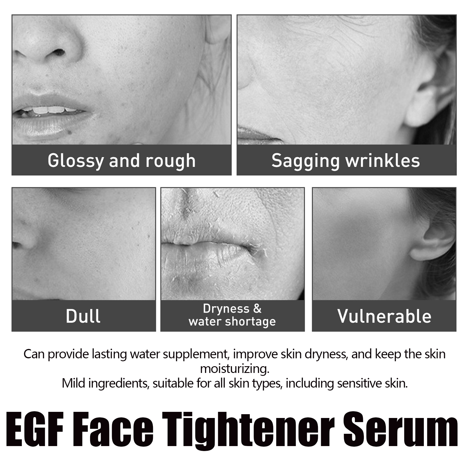 Our face firming serum contains glycerin and hydroxyethyl cellulose. It can slow skin aging, delay the development of fine lines and wrinkles, provide a long-lasting hydration supplement, effectively fade dark spots, and make the skin look brighter. Its application method is very simple: after cleaning the skin, take appropriate amount of this product in the palm, evenly apply to the face skin, massage along the cheeks until the skin is completely absorbed. Can provide lasting moisture supplement, improve dry skin, keep skin moisturized, mild ingredients, suitable for all skin types, including sensitive skin.