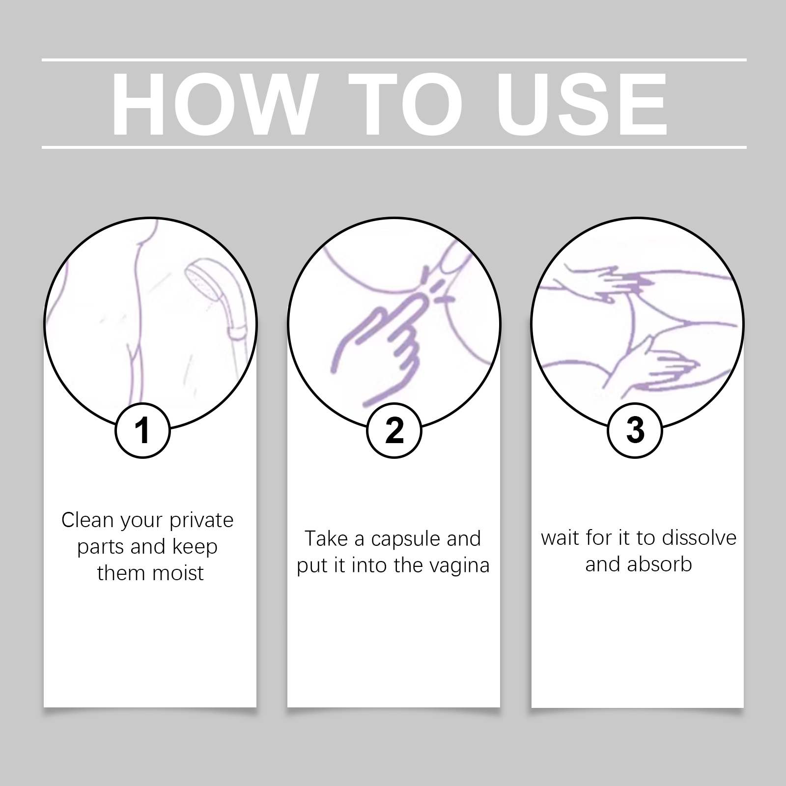 Our women's private care capsules contain lactoglobulin, colostrum and bee venom. It can deeply nourish, improve dry skin, restore the soft skin of private parts; Deeply nourish skin, promote metabolism, restore skin softness. The way to use it is simple: 1. Clean your private parts and keep them moist; 2. Take a capsule and put it into the vagina; 3. Let it dissolve and absorb. Women's private Area Care capsules stimulate the elastic fibers of the private area skin, tightening and enhancing the contours of the private area. The formula is mild. Speed up metabolism, carefully protect the appearance of private parts, improve self-confidence.