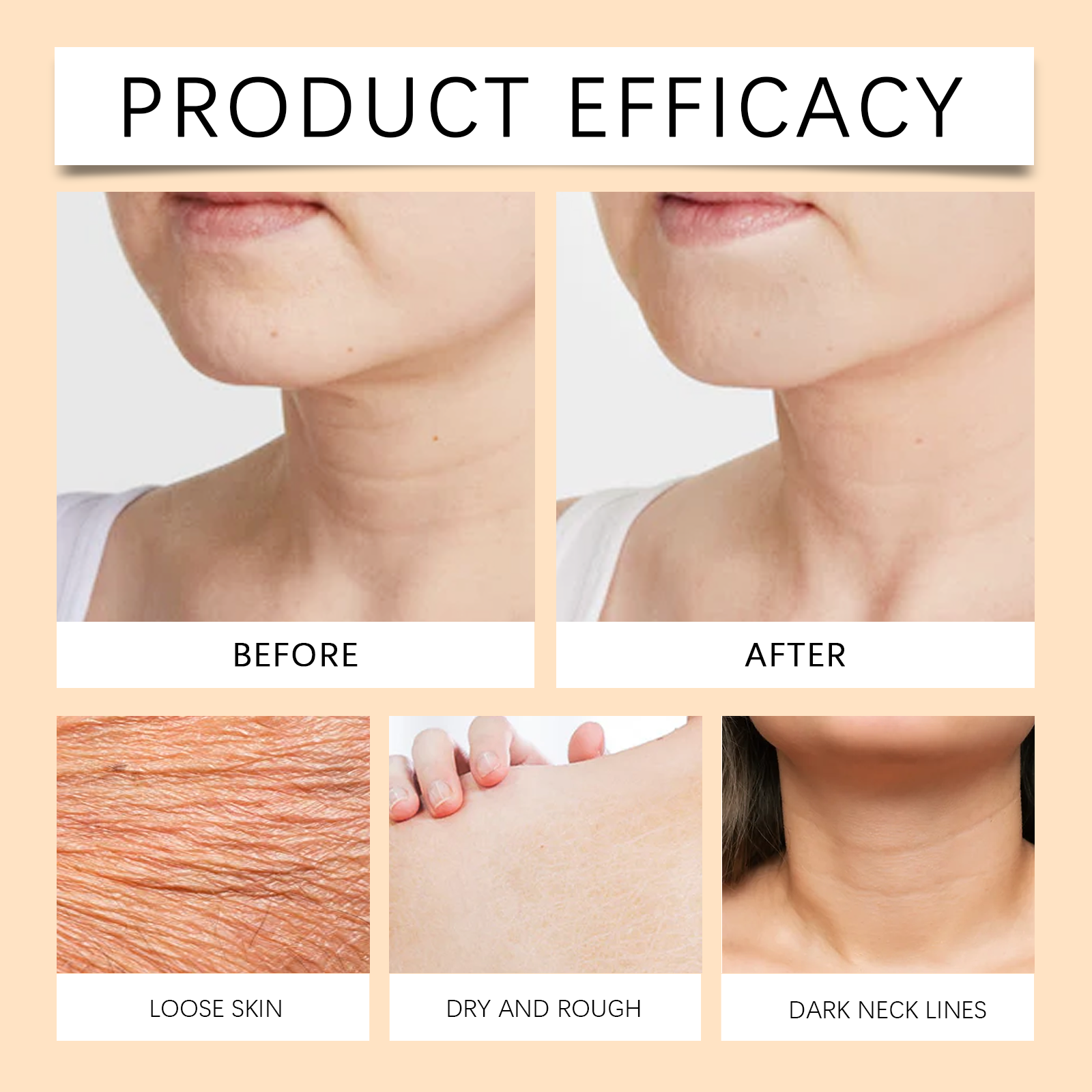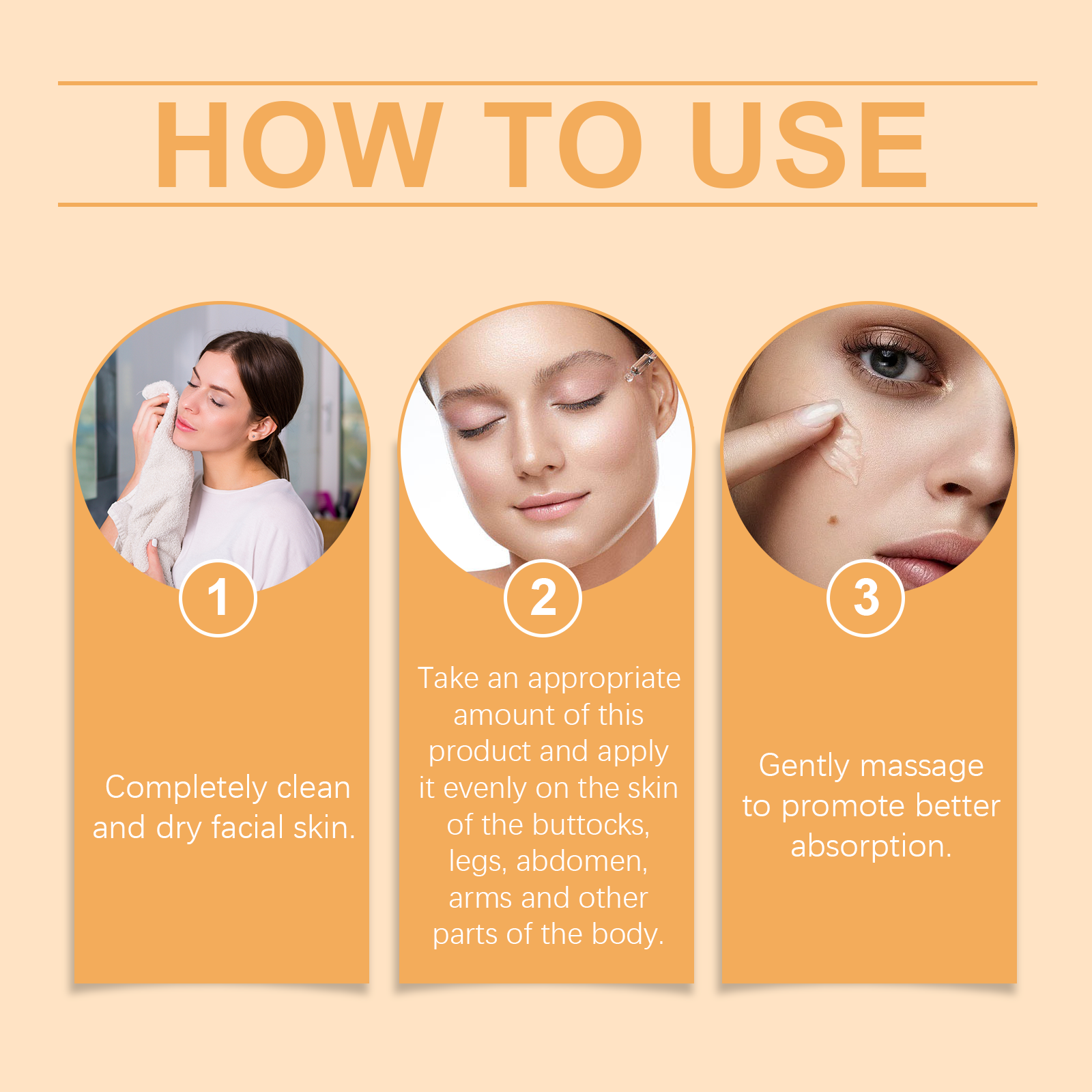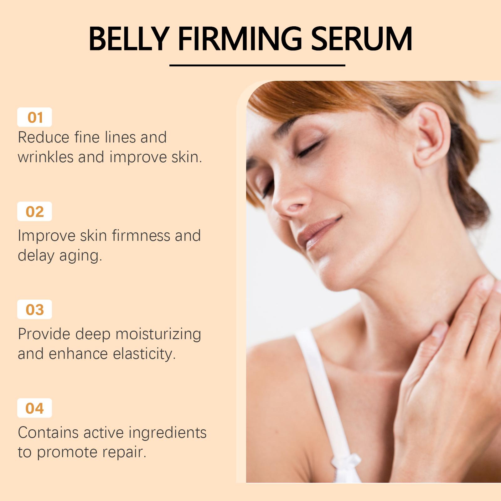 Our firming treatment essence contains avocado extract, shea butter, collagen. It can significantly improve wrinkles and fine lines. Provides deep and long-lasting moisturizing effect. Its application method is simple: 1. Thoroughly clean and dry facial skin. 2. Usage: Apply appropriate amount of the product evenly on the buttocks, legs, abdomen, arms and other skin; 3. Massage gently to promote better absorption. Enhance skin elasticity and rejuvenate. Use mild ingredients, safe and non-irritating.