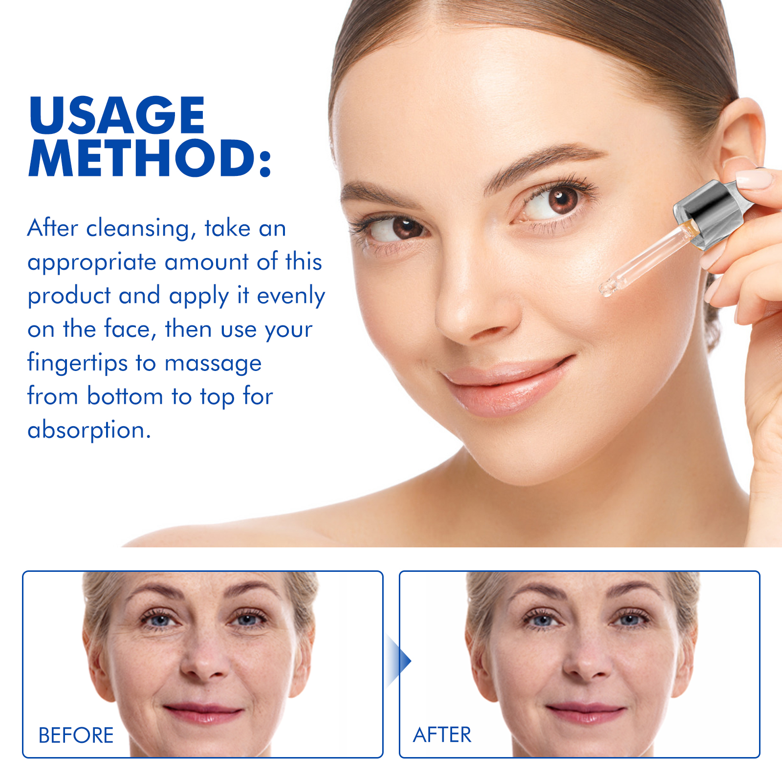 Our firming face serum contains glycerin, carbomer. It can restore skin vitality, improve skin elasticity, strong absorption. Its use method is very simple: after cleansing, apply an appropriate amount of this product evenly on the face, and then massage it from bottom to top with your fingertips. And can care for the face.