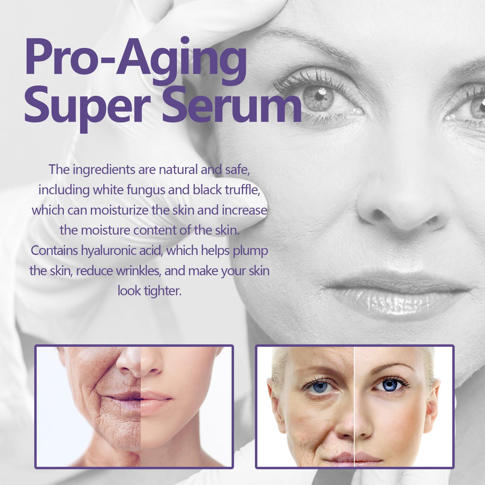 Our firming face serum contains hyaluronic acid, vitamin C, glycerin. It can hydrate the skin and increase the moisture content of the skin; Helps plump the skin, reduces wrinkles and makes your skin look firmer. Its use method is very simple: after cleansing and toning, take 2-3 drops of essence evenly apply to the face, massage with the hand in a circular motion to make it absorbed. Strengthen the skin barrier, reduce the impact of environmental stress, and restore youthful vitality to the skin.