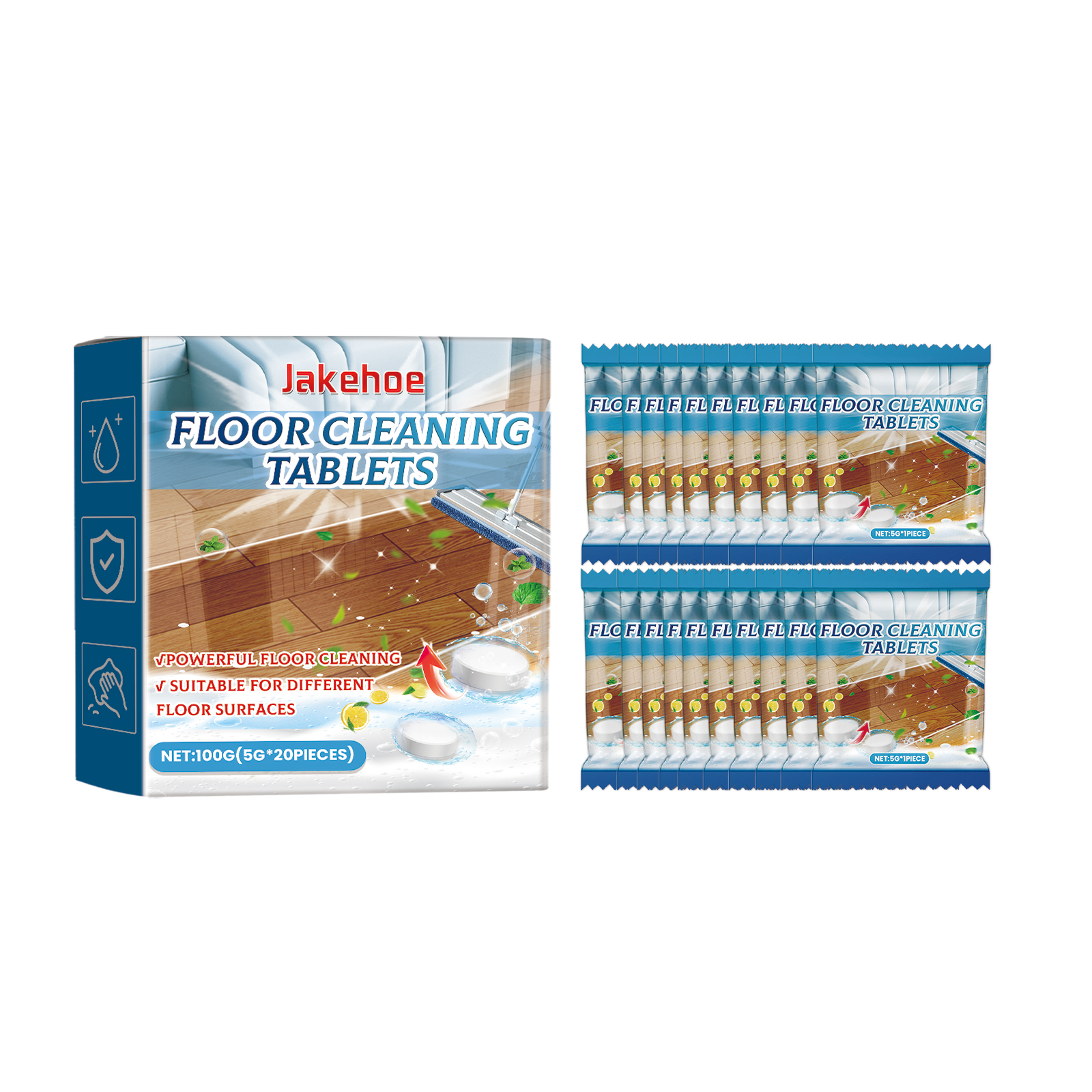 Our floor cleaning tablets contain disodium EDTA and sodium bicarbonate. It can effectively remove scale, remove stains and oil stains on the floor, and make the floor cleaner. Its use is simple: fill a basin with water and put cleaning tablets in it to dissolve them. Sprinkle the solution on the floor and mop it up. And you can clean the floor.