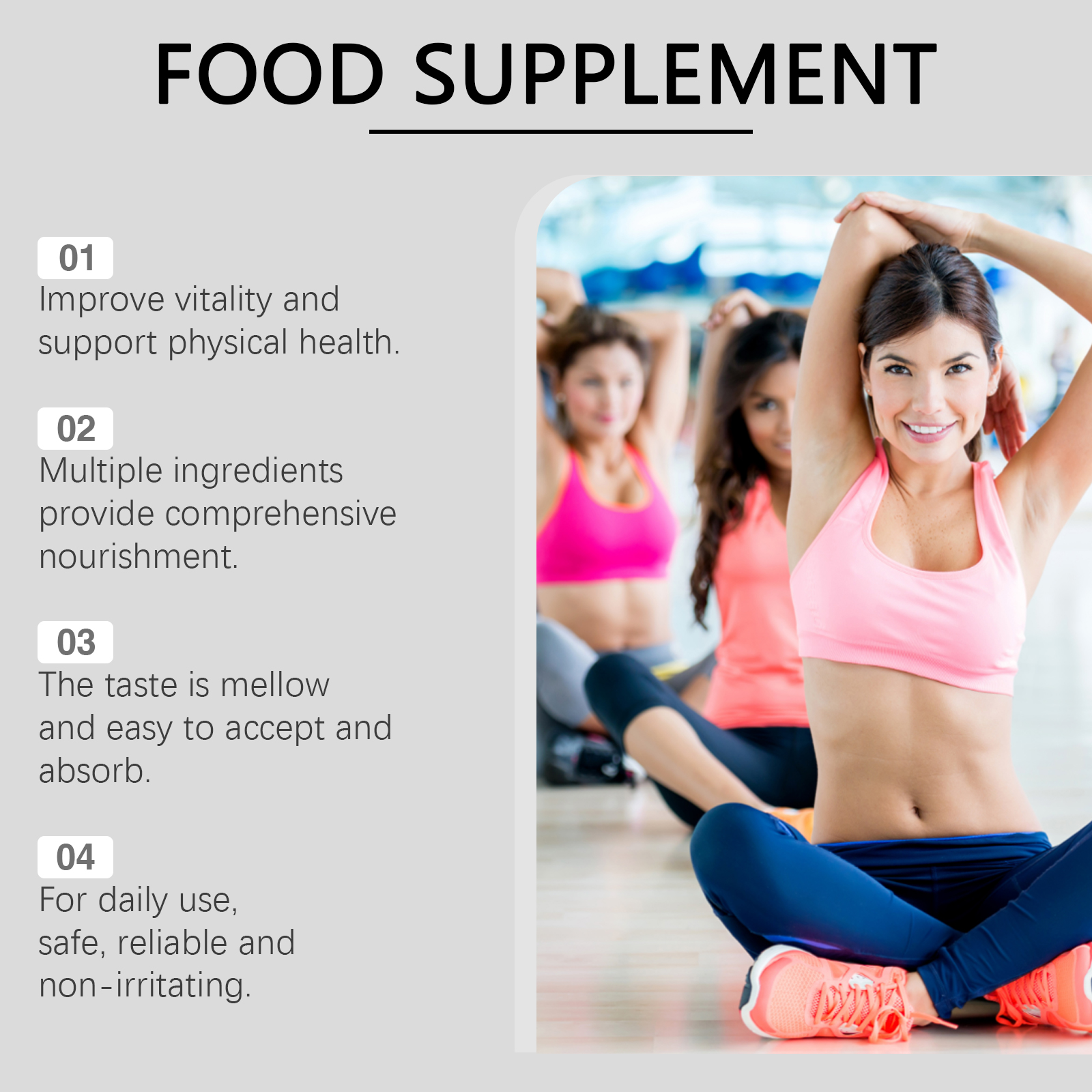 Our food supplements contain malt syrup, rock sugar, and monk fruit. It uses a variety of herbal ingredients to effectively help strengthen the body and enhance overall vitality. Through the tonic ingredients to help maintain the normal state of the body, suitable for daily health care its use method is very simple: prepare a cup of hot water, put an appropriate amount of this product into the water, stir well after drinking. And can provide sweet taste, increase the pleasure of taking, improve body function and physical fitness, maintain endurance.