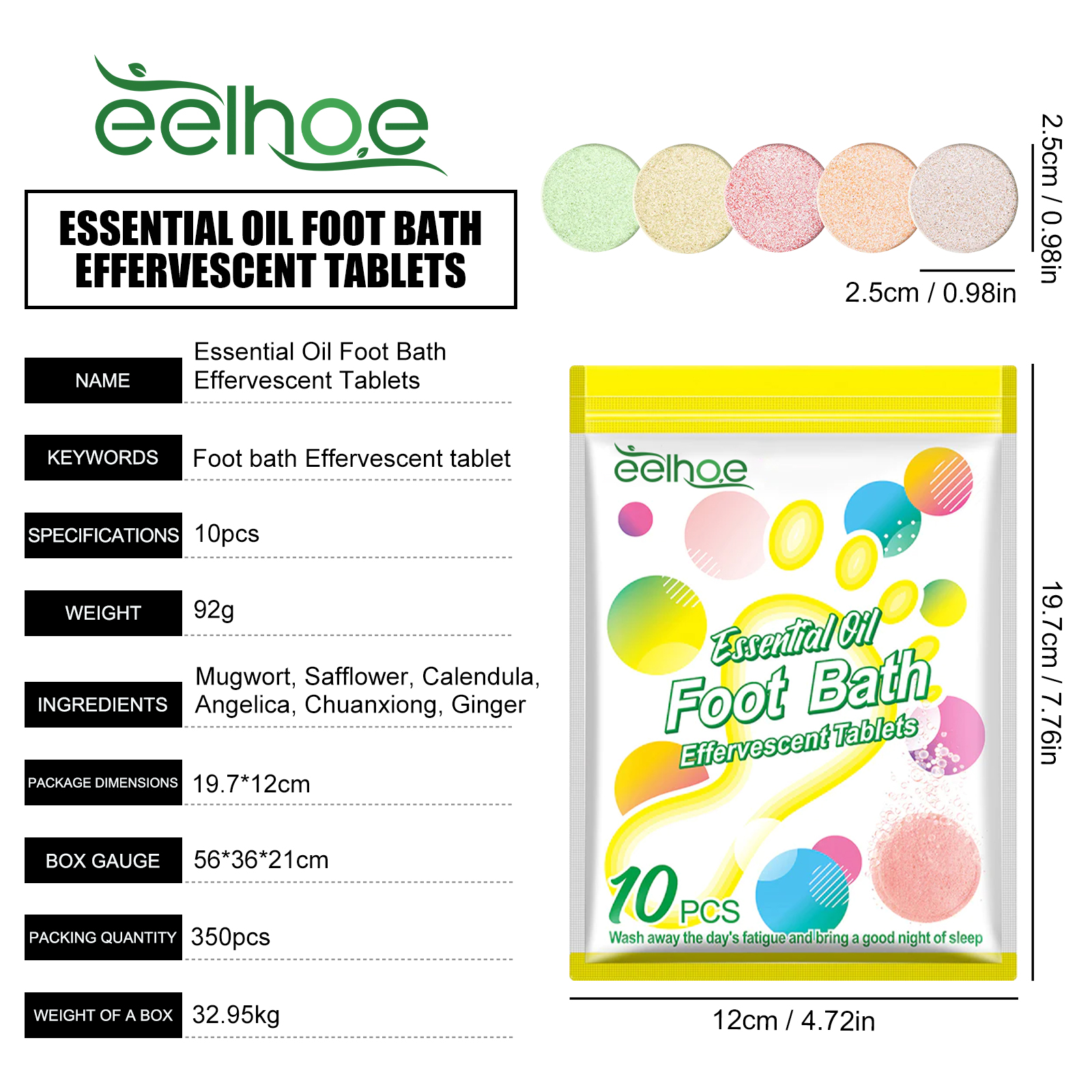 Our essence foot bath spa tablets contain ligusticum Chuanxiong and ginger. It can promote healthy digestion and metabolism, reduce elephant legs and loose body fat, effectively improve blood circulation, so that you can easily have a good body. Its use is simple: 1. Take a pot of warm boiling water and dissolve the effervescent tablets in it. 2. Soak the feet for about 20-30 minutes, 3. Daily use can get better results. And it's perfect for people who are weak, sweaty and tired. Rejuvenate your legs and whole body, relieve stress, relax in the comfort of your home, and pamper your feet.