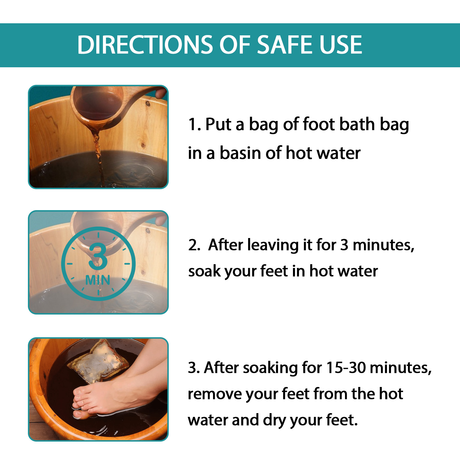 Our foot bath contains wormwood extract and ligusticum chuanxiong extract. It can penetrate into the skin, relieve fatigue, suitable for people with great pressure in work and life, containing angelica, Leonurus safflower, patchouli, Ligusticum Chuanxiong and other extracts. Its use method is very simple: 1. Put a bag of foot soak bag in a basin of hot water, 2. After 3 minutes of letting it sit, soak your feet in hot water, 3. After soaking for 15-30 minutes, remove your feet from the hot water and dry them. And can help relieve foot pain, promote foot blood circulation, moisturize the sole.