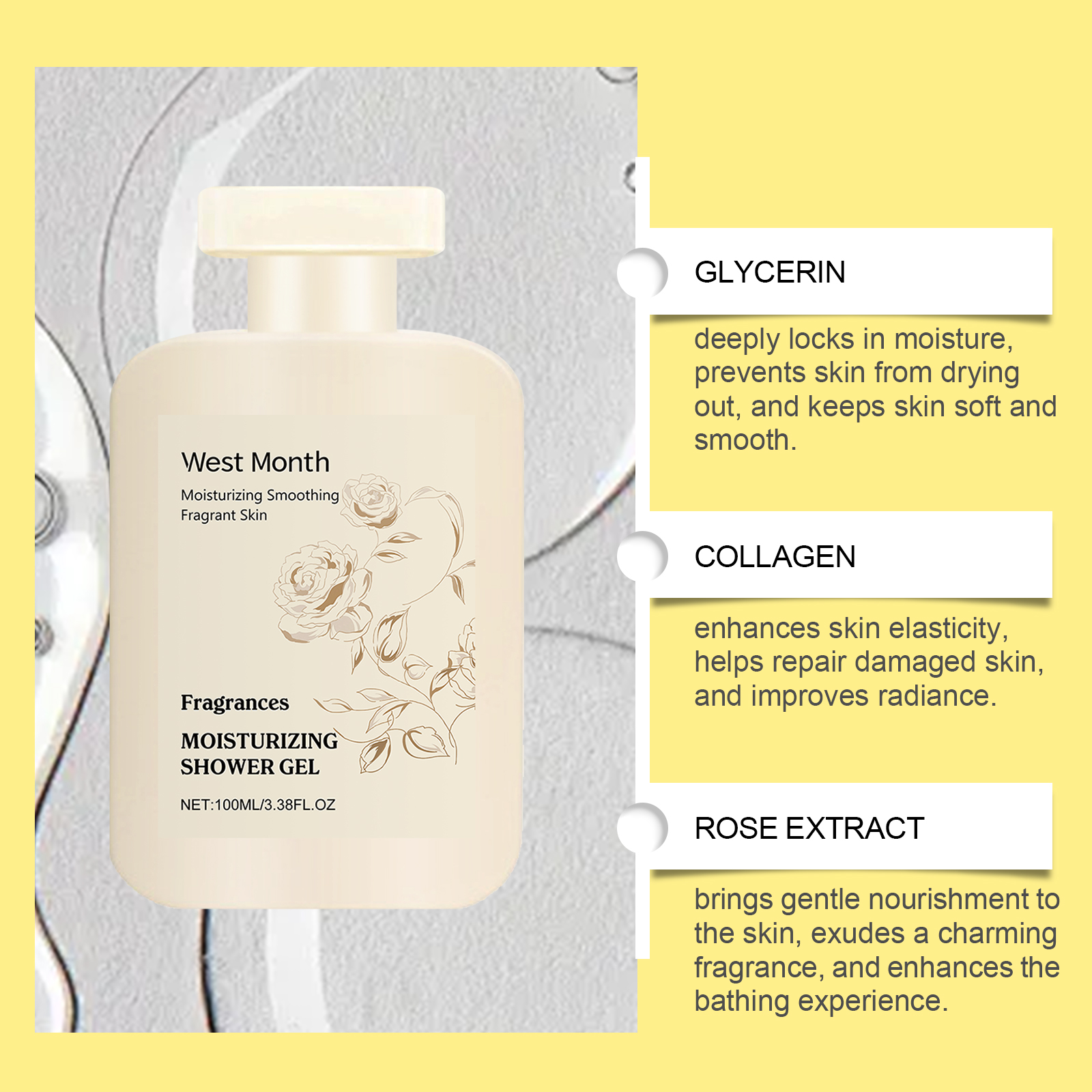 Our perfumed moisturizing body wash contains collagen, rose extract and arginine. It helps to lock in moisture and keep skin smooth and shiny. Its use method is very simple: wet the whole skin with warm water, take an appropriate amount of this product on the palm and knead into a foam. Apply the foam evenly to the whole body and massage gently to promote absorption. Rinse the foam off your body with warm water. It also uses dense foam to gently clean the dirt on the skin surface, avoiding dryness and tightness.