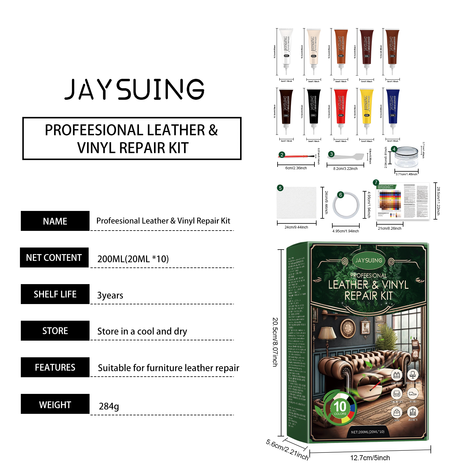 Our furniture leather repair 10-color kit contains the dispersant, dodecyl ester. It can help repair leather goods, fill scratches applied to various leather fabrics, and make them look like new. Its use is simple: 1. If there is no filler material at the bottom of the damaged area, or the filler material has shifted or loosened, rebuild the area with a similar material and fix the bottom, 2. For cuts and holes larger than 1/4 inch, you will need to cut a piece of substrate that is slightly larger than the damaged area, place it under the damaged area and secure it. Damage, peeling surfaces, or scratches less than 1/4 inch can be repaired immediately, 3. Stir in an empty mixing jar to get a new color, 4. Apply the leather repair paste evenly on the damaged area with a brush until it covers the original color. If you need to re-apply, it is recommended to dry for 30 minutes before re-applying. After the repair is complete, wait 24 hours for the repaired surface to dry completely. And can repair furniture and so on.
