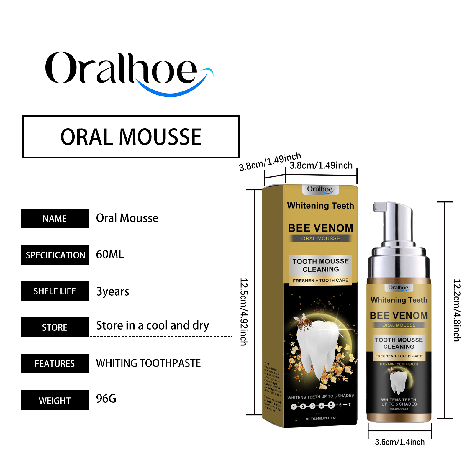 Our dental mousse contains sodium lauryl sulfate, 1, 2-hexadiol. It protects tooth enamel from acid attack and enhances tooth protection. Its use is very simple: take an appropriate amount of this product on the toothbrush, brush gently for 3 minutes with the correct brushing method, and rinse your mouth thoroughly with water. It can effectively remove the macula and stains on the surface of the teeth, promote dental health, and maintain oral hygiene.